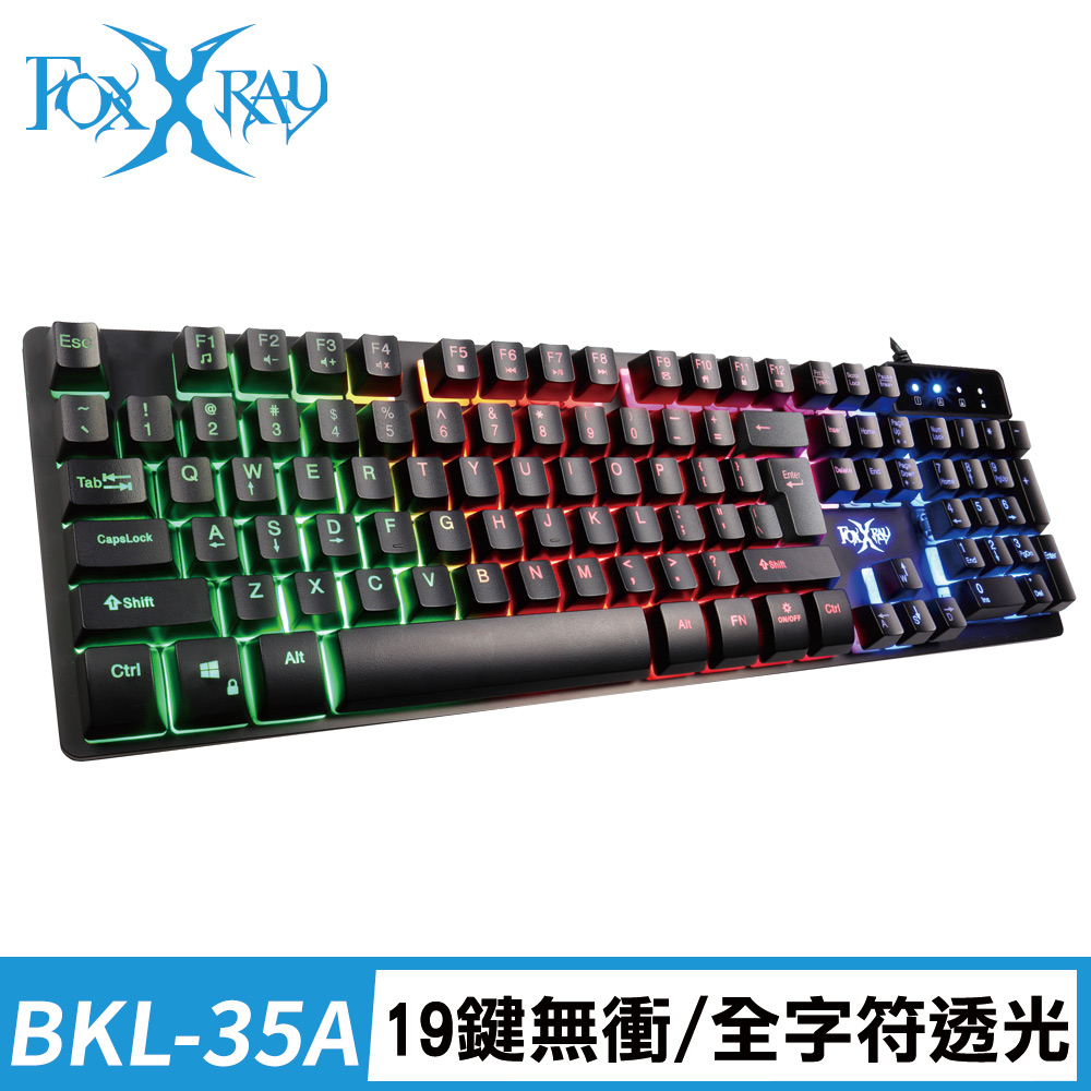 簡介 / | FOXXRAY 重裝戰狐電競鍵盤(FXR-BKL-35A):》19鍵不衝突,專為遊戲優化設計》彩紅背光帶,呼吸 恆亮效果》透光雷雕鍵帽,全字符背光》懸浮式鍵帽,方便清理維護》視窗鍵鎖定 |