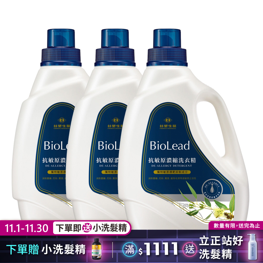 《台塑生醫》BioLead抗敏原濃縮洗衣精2kg(3瓶入)