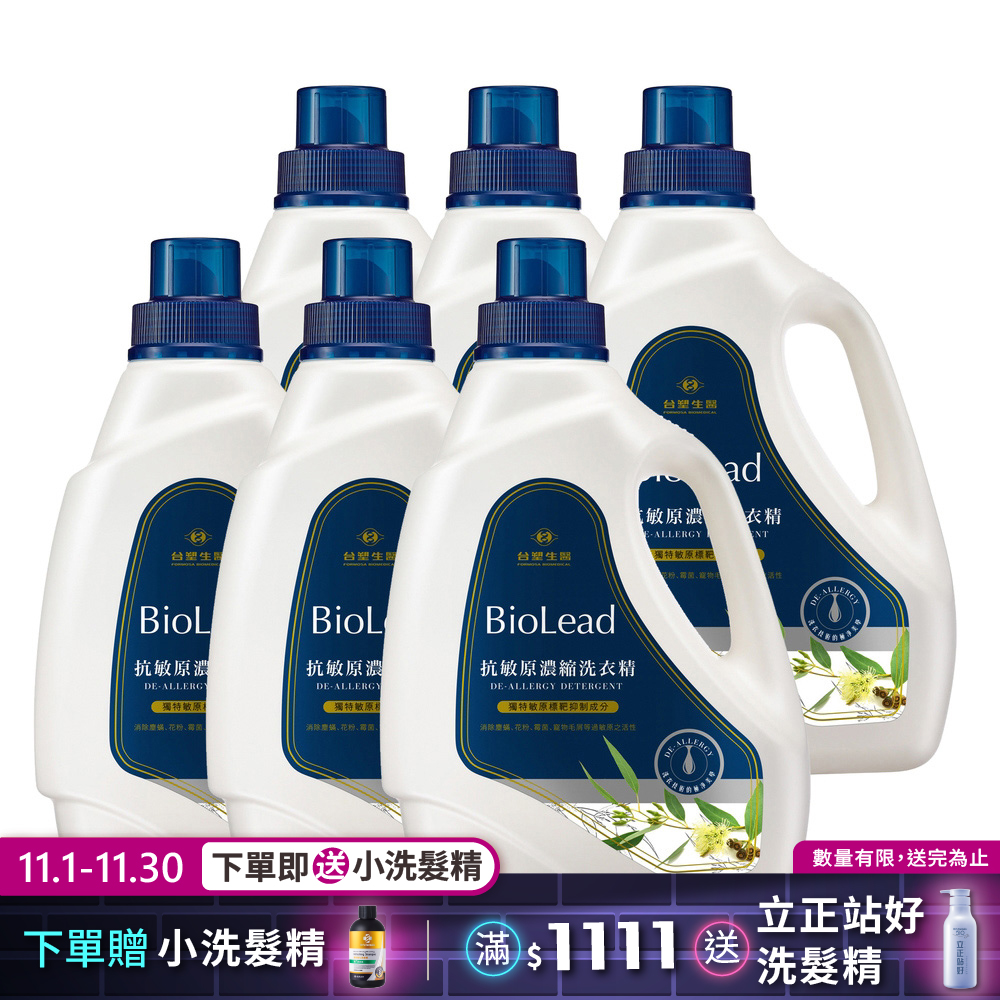 《台塑生醫》BioLead抗敏原濃縮洗衣精2kg(6瓶入)