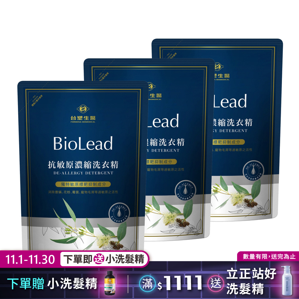 《台塑生醫》BioLead抗敏原濃縮洗衣精補充包1.8kg(3包入)