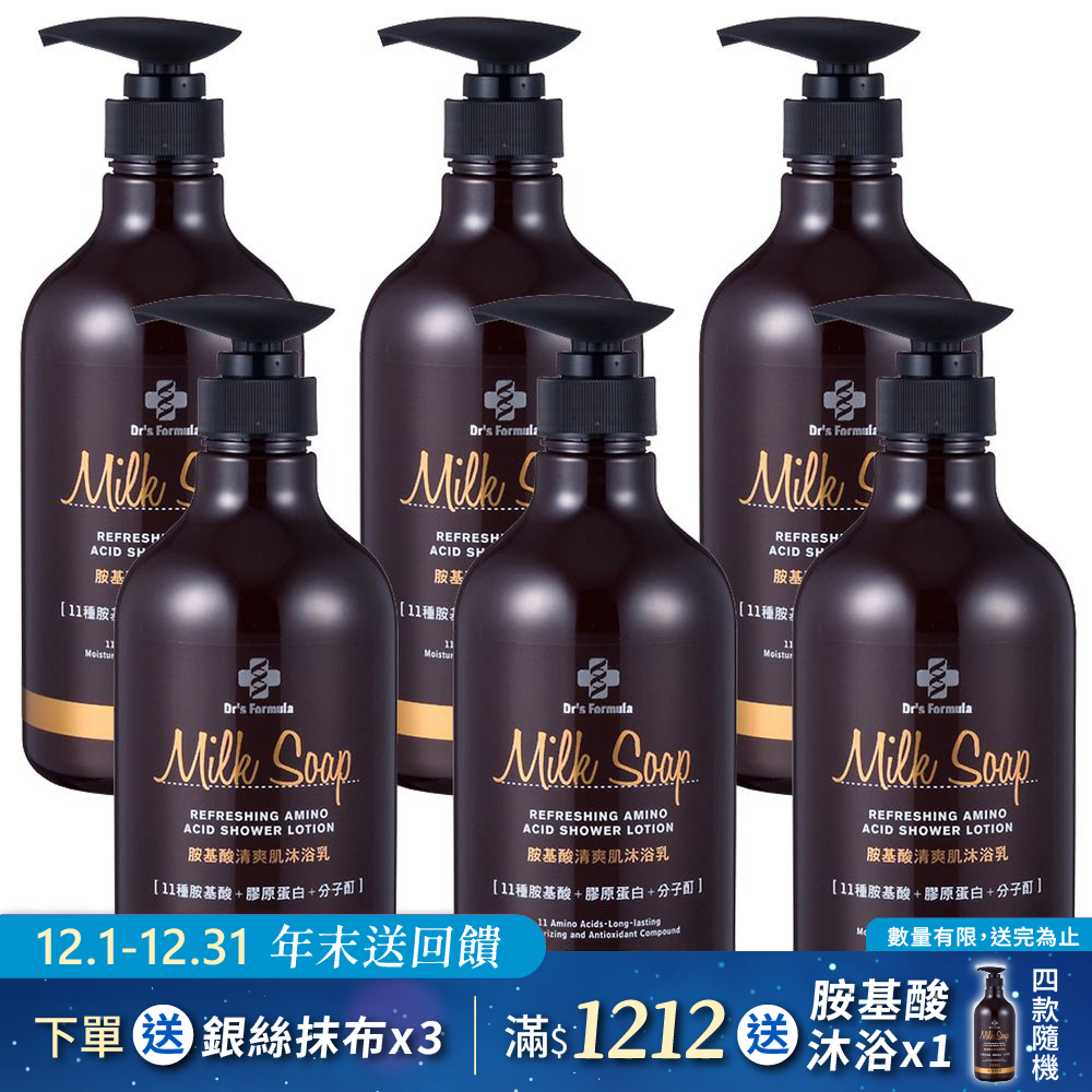 內容簡介 商品規格:《台塑生醫》Dr's Formula胺基酸清爽肌沐浴乳 (雪皂香氛) 800g*6入 全成分:Aqua, Lauric Acid, Sodium Lauryl Ether Sulfate, Cocamidopropyl Betaine, Myristic Acid, Potassium Hydroxide, Potassium Laureth-1 Phosphate, Glycerin, Cocamide Methyl MEA, Ethylene Glycol Distearate , Fragrance, Decyl Glucoside, Sodium Chloride, PEG-14M, Disodium EDTA, Sodium PCA, Sodium Lactate, Arginine, Aspartic Acid, PCA, Glycine, Alanine, Serine, Valine, Proline, Threonine, Isoleucine, Histidine, Phenylalanine, Soluble Collagen, Ceramide 3, Ceramide 6 II, Ceramide 1, Phytosphingosine, Cholesterol, Sodium Lauroyl Lactylate, Carbomer, Xanthan Gum, Phenoxyethanol, Isopropylmethylphenol, Iodopropynyl Butylcarbamate 保存期限:三年 保存方法:請放置於陰涼處,勿讓陽光直射。