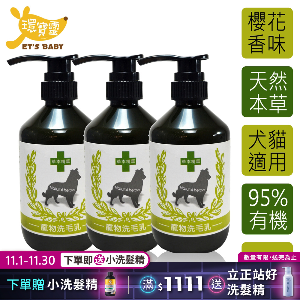 【環寶靈】寵物寶貝驅蚤抗菌洗毛乳(櫻花)400ml(3瓶 組)