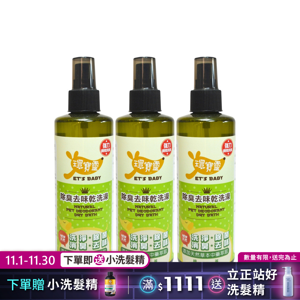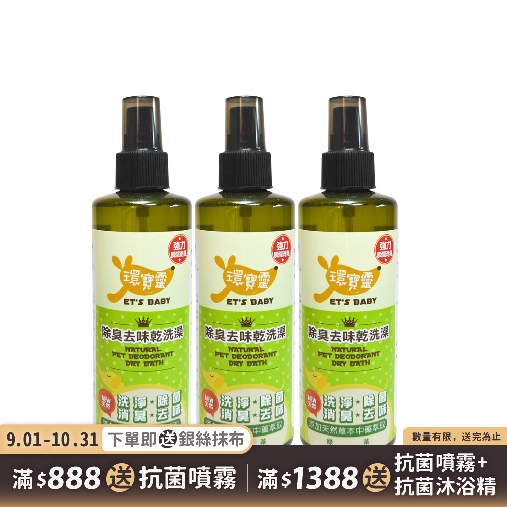 內容簡介 【環寶靈】寵物除臭去味乾洗澡(綠茶)260ml 特點: 1. 可用於寵物身上,也可用在居家環境清潔及需要除臭之地方。 2. 添加中藥龍芽草,抗菌抑菌率達100%,天然無毒無害,沒有任何化學成分,不傷寵物肌膚及環境。 3. 具有保護效果的天然獨家配方,使用後寵物身上及環境會形成一層保護膜。 4. 利用微奈米化技術,將清潔效果做到更細微,以達到更深層的潔淨效果。 5. 產品皆為天然成分,故使用中寵物不慎舔食,請勿擔心。 6. 綠茶萃取精華具有保濕成分且抗氧化能力強,能防護毛髮掉落,並舒暢寵物皮脂線,維持寵物毛髮健康,身上味道清新無異味。 使用方法 1. 將產品均勻噴灑全身,包括四肢及腳趾內側,噴灑後可用手稍微按摩後,再用毛巾擦拭即可。 (建議將產品先噴在雙手後,再輕柔的搓揉寵物皮脂腺,以達到最好的清潔效果) 2.將產品噴灑在需要除臭的地方,每天均勻噴灑,即可達到除臭除菌的效果。 商品內容:【環寶靈】寵物除臭去味乾洗澡(綠茶)260ml(3瓶 組) 成分:龍芽草提起物 海洋礦物塩 椰子油 檸檬酸 小麥蛋白 椰油甜菜鹼 純水 綠茶萃取液 規格容量:260ml 製造日期:如標籤所示 有效期限:三年 製造地:台灣 注意事項 1.若狗狗是長毛犬,請將毛髮撥開再噴灑產品。 2.將本產品放置陰涼處。 3.本產品非食品,請勿吞食。 4.如誤噴灑到眼睛,請用大量清水清洗。