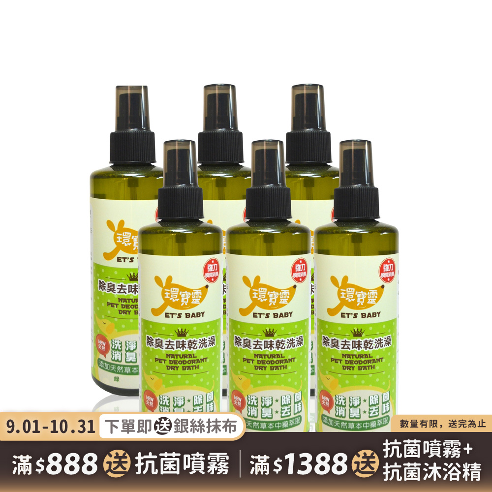 內容簡介 【環寶靈】寵物除臭去味乾洗澡(綠茶)260ml 特點: 1. 可用於寵物身上,也可用在居家環境清潔及需要除臭之地方。 2. 添加中藥龍芽草,抗菌抑菌率達100%,天然無毒無害,沒有任何化學成分,不傷寵物肌膚及環境。 3. 具有保護效果的天然獨家配方,使用後寵物身上及環境會形成一層保護膜。 4. 利用微奈米化技術,將清潔效果做到更細微,以達到更深層的潔淨效果。 5. 產品皆為天然成分,故使用中寵物不慎舔食,請勿擔心。 6. 綠茶萃取精華具有保濕成分且抗氧化能力強,能防護毛髮掉落,並舒暢寵物皮脂線,維持寵物毛髮健康,身上味道清新無異味。 使用方法 1. 將產品均勻噴灑全身,包括四肢及腳趾內側,噴灑後可用手稍微按摩後,再用毛巾擦拭即可。 (建議將產品先噴在雙手後,再輕柔的搓揉寵物皮脂腺,以達到最好的清潔效果) 2.將產品噴灑在需要除臭的地方,每天均勻噴灑,即可達到除臭除菌的效果。 商品內容:【環寶靈】寵物除臭去味乾洗澡(綠茶)260ml(6瓶 組) 成分:龍芽草提起物 海洋礦物塩 椰子油 檸檬酸 小麥蛋白 椰油甜菜鹼 純水 綠茶萃取液 規格容量:260ml 製造日期:如標籤所示 有效期限:三年 製造地:台灣 注意事項 1.若狗狗是長毛犬,請將毛髮撥開再噴灑產品。 2.將本產品放置陰涼處。 3.本產品非食品,請勿吞食。 4.如誤噴灑到眼睛,請用大量清水清洗。
