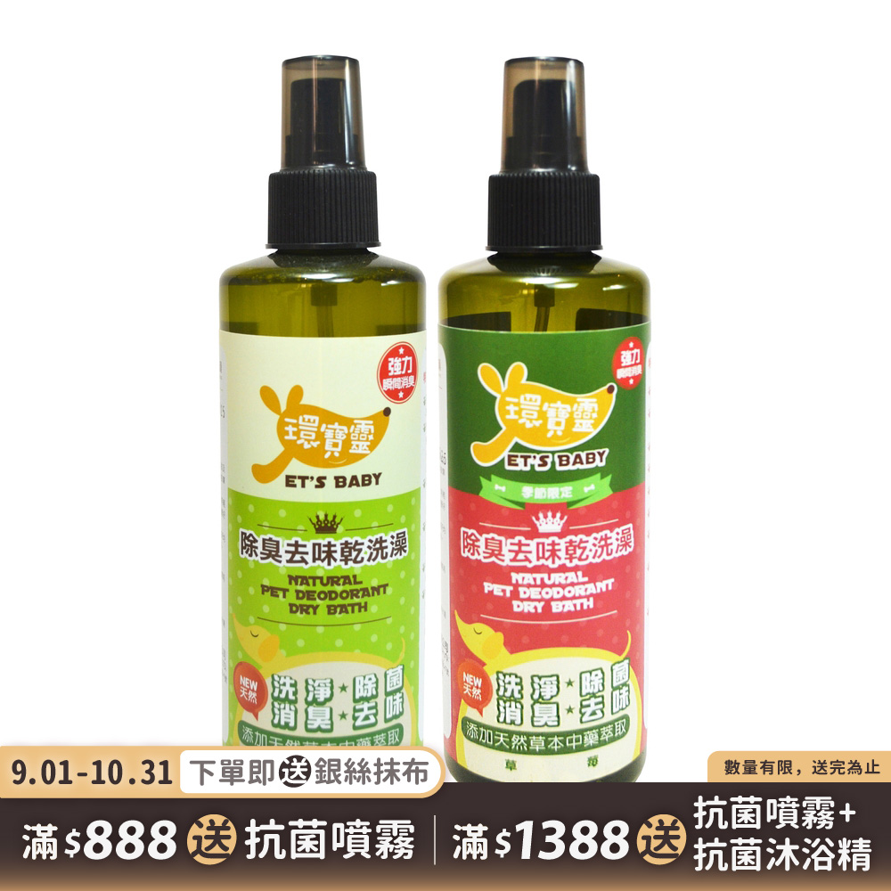內容簡介 【環寶靈】寵物除臭去味乾洗澡260ml(綠茶+草莓) 特點: 1. 可用於寵物身上,也可用在居家環境清潔及需要除臭之地方。 2. 添加中藥龍芽草,抗菌抑菌率達100%,天然無毒無害,沒有任何化學成分,不傷寵物肌膚及環境。 3. 具有保護效果的天然獨家配方,使用後寵物身上及環境會形成一層保護膜。 4. 利用微奈米化技術,將清潔效果做到更細微,以達到更深層的潔淨效果。 5. 產品皆為天然成分,故使用中寵物不慎舔食,請勿擔心。 6. 綠茶萃取精華具有保濕成分且抗氧化能力強,能防護毛髮掉落,並舒暢寵物皮脂線,維持寵物毛髮健康,身上味道清新無異味。 7. 添加食用級草莓,香味可吸引寵物注意,可直接噴在寵物嘴中,使其牙垢軟化,也可搭配寵物牙刷一起使用,效果更好。 使用方法 1. 將產品均勻噴灑全身,包括四肢及腳趾內側,噴灑後可用手稍微按摩後,再用毛巾擦拭即可。 (建議將產品先噴在雙手後,再輕柔的搓揉寵物皮脂腺,以達到最好的清潔效果) 2.將產品噴灑在需要除臭的地方,每天均勻噴灑,即可達到除臭除菌的效果。 商品內容:【環寶靈】寵物除臭去味乾洗澡260ml(綠茶+草莓) 成分: 綠茶:龍芽草提起物 海洋礦物塩 椰子油 檸檬酸 小麥蛋白 椰油甜菜鹼 純水 綠茶萃取液 草莓:龍芽草提起物 海洋礦物塩 椰子油 檸檬酸 小麥蛋白 椰油甜菜鹼 純水 食用級草莓 規格容量:260ml*2入 製造日期:如標籤所示 有效期限:三年 製造地:台灣 注意事項 1.若狗狗是長毛犬,請將毛髮撥開再噴灑產品。 2.將本產品放置陰涼處。 3.本產品非食品,請勿吞食。 4.如誤噴灑到眼睛,請用大量清水清洗。