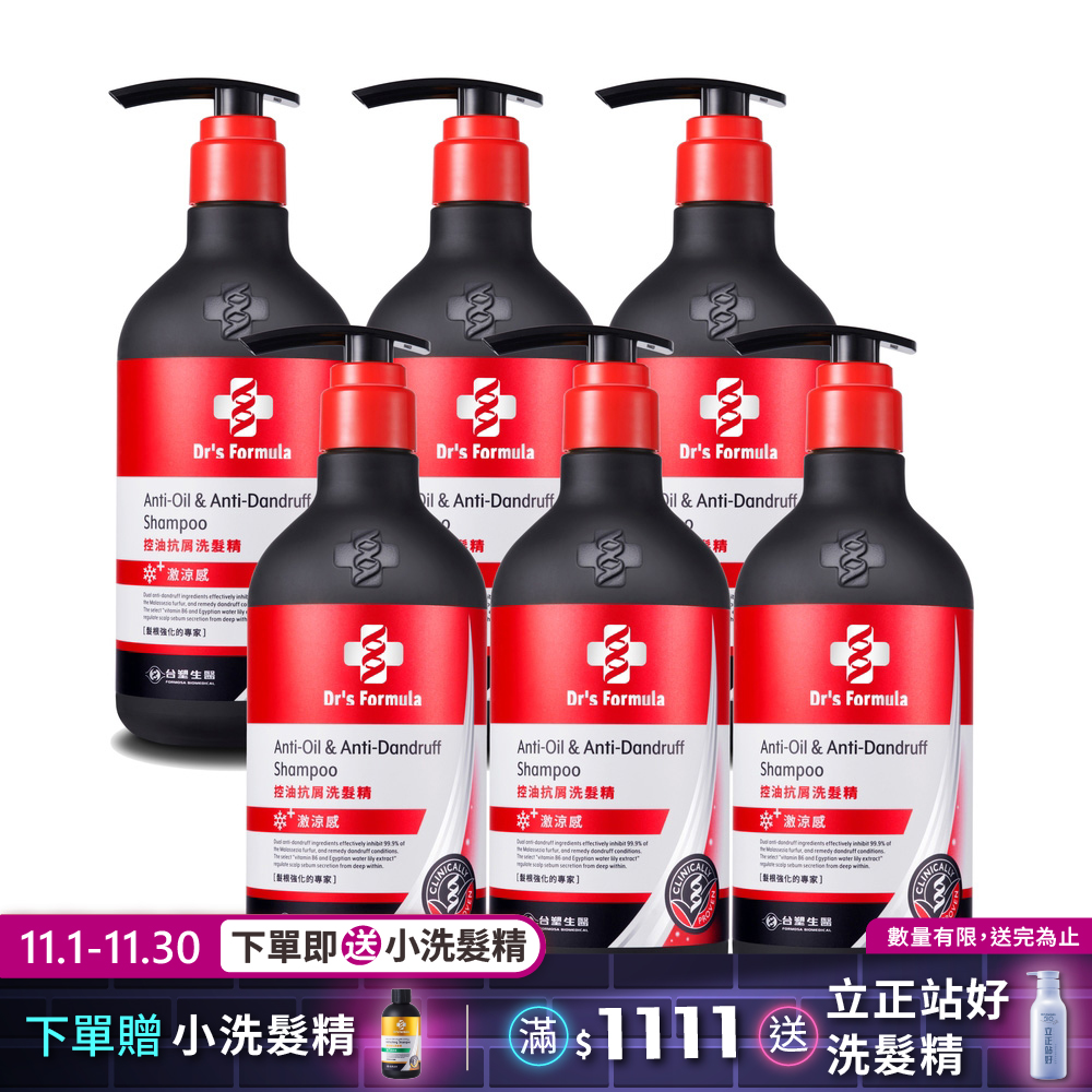 內容簡介 商品規格:Dr's Formula控油抗屑洗髮精升級版(激涼款)三代580g*6入 淨重: 580g 用途: 清潔頭髮 使用方法: 將頭髮充分潤濕,依個人髮量取適量洗髮精,輕揉按摩頭皮並且停留1-3分鐘後,再以清水洗淨。 全成分: Aqua, Sodium Laureth Sulfate, Sodium C14-16 Olefin Sulfonate, Propylene Glycol, Cocamidopropyl Betaine, Menthol, Polysorbate 20, Disodium Laureth Sulfosuccinate, Fragrance, Betaine, Sodium Chloride, Polyquaternium-10, Phenoxyethanol, Menthyl Lactate, Ceteareth-60 Myristyl Glycol, Climbazole, Pyridoxine Hydrochloride, Hydroxypropyl Methylcellulose, Hexylene Glycol, Citric Acid, Capryloyl Glycine, Chlorhexidine Diundecylenate, Polyquaternium-7, Piroctone Olamine, Polyquaternium-55, Benzyl Alcohol, Xylitylglucoside, Sodium Benzoate, Sodium Acetate, Glycerin, Caprylyl Glycol, Isopropanol, Methylchloroisothiazolinone, Propanediol, Isopropyl alcohol, Methylisothiazolinone, Butylene Glycol, Scutellaria Baicalensis Root Extract, Cnidium Monnieri Fruit Extract, Nelumbo Nucifera Flower Extract, Nymphaea Coerulea Flower Extract, Hydrolyzed Corn Protein, Hydrolyzed Yeast Protein, Pisum Sativum (Pea) Extract, Potassium Sorbate 注意事項: 若不慎誤入眼睛,請立即以清水沖洗;若不慎誤食,請送醫診治。本品因含多項植物萃取,產品色澤、氣味、稠度可能會依溫濕度有些微變化,實屬正常現象。產品開封後,請儘速於六個月內使用完畢,以確保最佳品質。 製造日期(月 日 西元年)、批號:標示於瓶身 有效期間:三年 保存方法:請放置於陰涼處,勿讓陽光直射。 製造業者名稱:台塑生醫科技股份有限公司 製造業者地址:台北市松山區敦化北路201之36號5樓 客服專線:0800-211-168 原產地:台灣 販售商廠商名稱: 灝翎國際有限公司 販售商地址:桃園市中壢區龍昌路180巷20號 販售商電話號碼:03-4564488 販售商統一編號:80718835