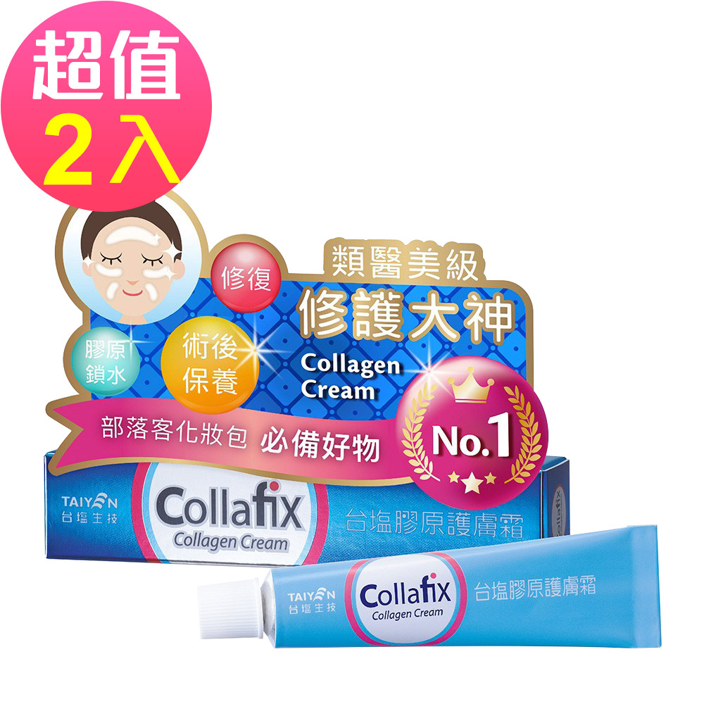 內容簡介 "品名:台鹽膠原護膚霜 容量:10公克 產品用途:潤澤、修護肌膚 使用方法:均勻塗抹於肌膚表層 適用對象:任何膚質均適用 注意事項: 1.避免接觸眼睛與黏膜,若使用時皮膚有異樣,請暫停使用 2.使用時請用乾淨棉花棒或刮匙沾取,避免瓶口汙染 3.不得使用於三歲以下孩童 保存方法:請密封置於陰涼乾燥處,避免日光直射。 成分: Aqua, Caprylic Capric Triglyceride, Glycerine, Cetearyl Ethylhexanoate, Ethylhexyl Stearate, Ethylhexyl Palmitate, Cetyl Palmitate, Glyceryl Stearate, Glyceryl Distearate, Sodium Stearoyl Lactylate, Cetearyl Alcoh, Sorbitan Stearate, Potaddium Palmitoyl, Hydrolyzed Wheat Protein, Collagen, Sodium Stearate, Paraffinum Liquidum, Methyl Paraben, Phenoxyethanol, Chlorhexidine Digluconate. 商品特色 1.內含台鹽膠原蛋白醫材原料,配方溫和不刺激,具優異的保濕與鎖水功能,可形成保護皮脂膜,提供乾燥龜裂的肌膚優質的護理,可作為醫學美容術後的皮膚保養,幫助皮膚修護、保濕與潤澤,避免因過度乾燥而產生斑痕