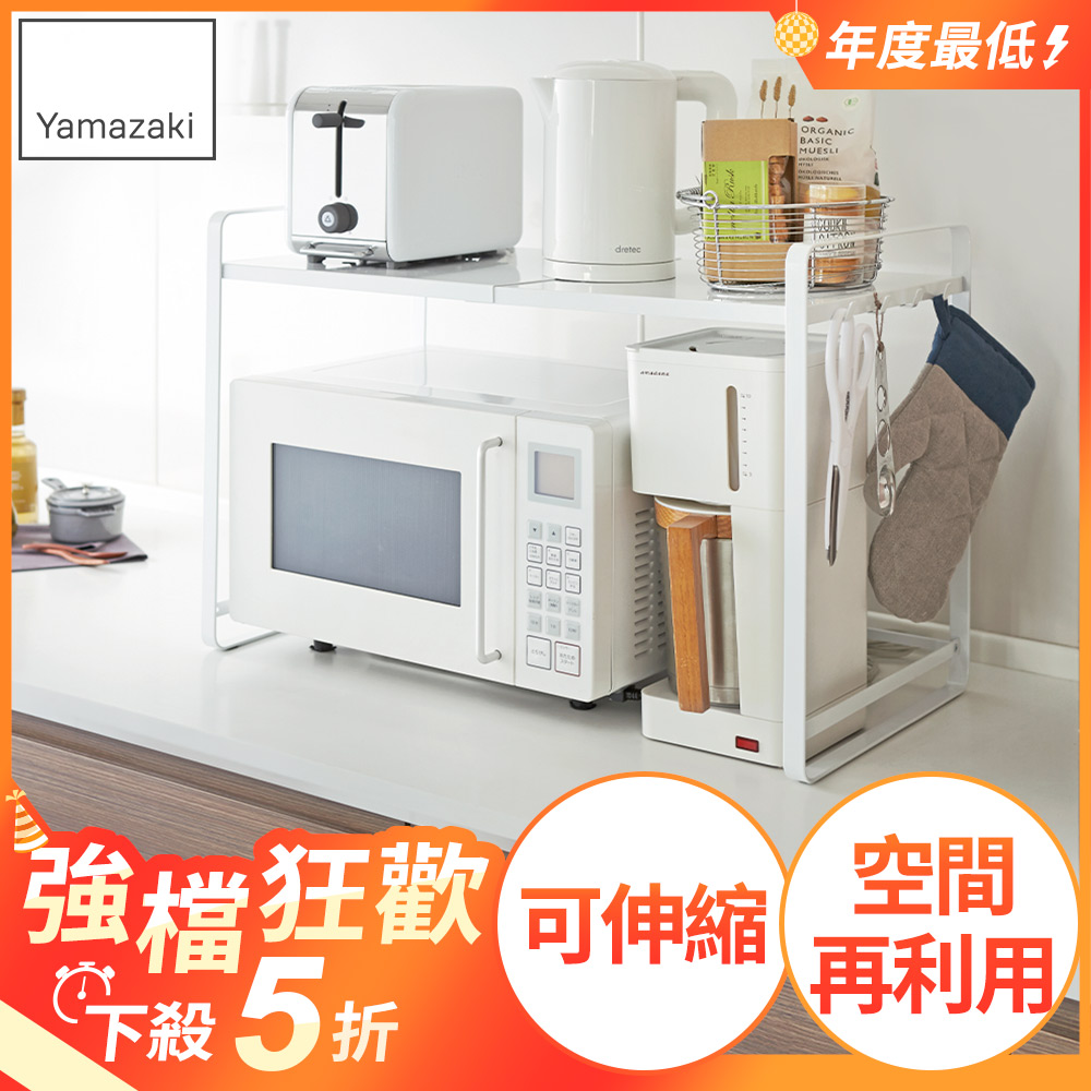 日本【YAMAZAKI】tower伸縮式微波爐架(白)