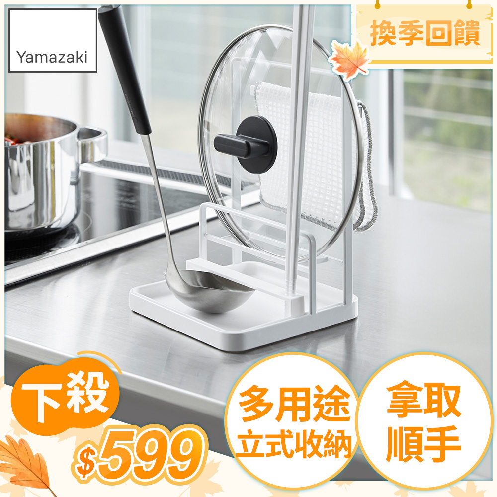 簡介 / | 日本【YAMAZAKI】tower多功能立式收納架(白):★特殊結構可將鍋蓋、平板、湯勺等直立收納★具有掛桿可放上抹布晾乾★具有筷子專屬置放洞孔★可暫時將廚具放在托盤邊緣★底 |
