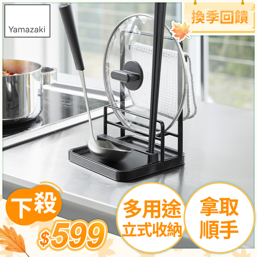 簡介 / | 日本【YAMAZAKI】tower多功能立式收納架(黑):★特殊結構可將鍋蓋、平板、湯勺等直立收納★具有掛桿可放上抹布晾乾★具有筷子專屬置放洞孔★可暫時將廚具放在托盤邊緣★底 |