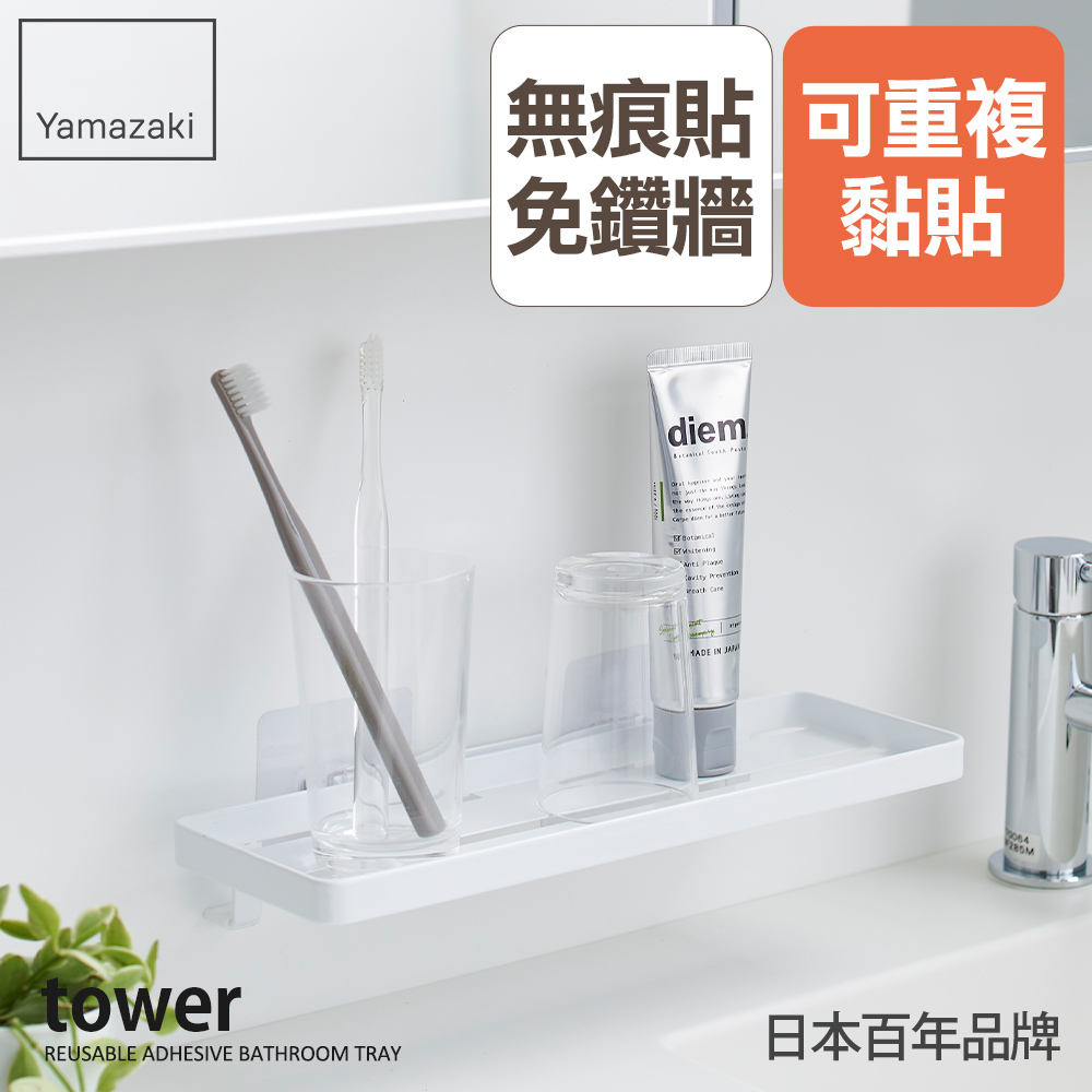 簡介 / | 日本【YAMAZAKI】tower無痕貼多功能置物架(白):,【日本百年品牌台灣獨家總代理】☆檯面小物收納救星檯面空間不夠就靠它,輕鬆收納棉花棒、乳液等物品,尺寸寬大也可放置 |