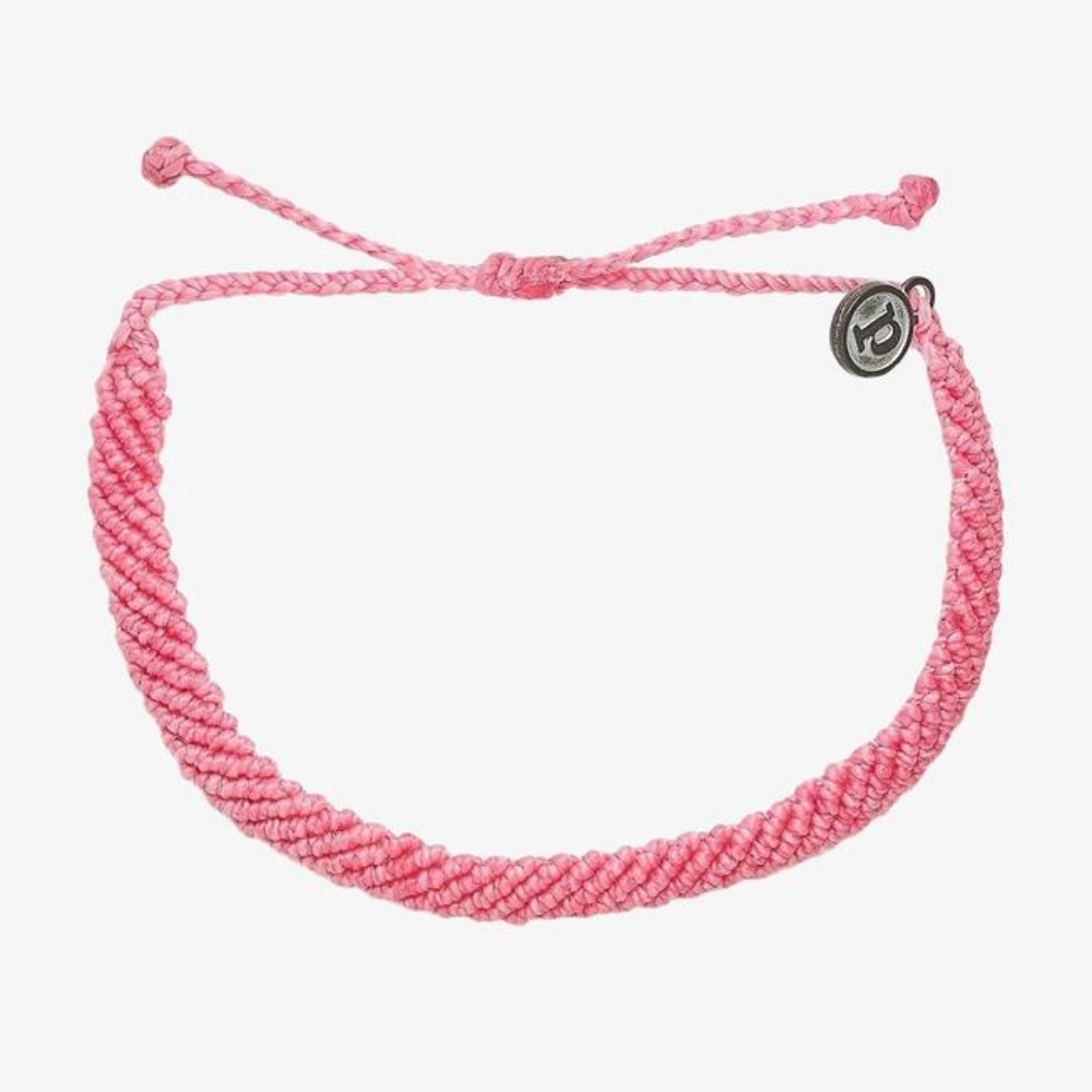 商品名 / | Pura Vida 美國手工 PINK HALF FLAT WOVEN 窄版編織 粉紅色防水蠟線可調式衝浪手環 |