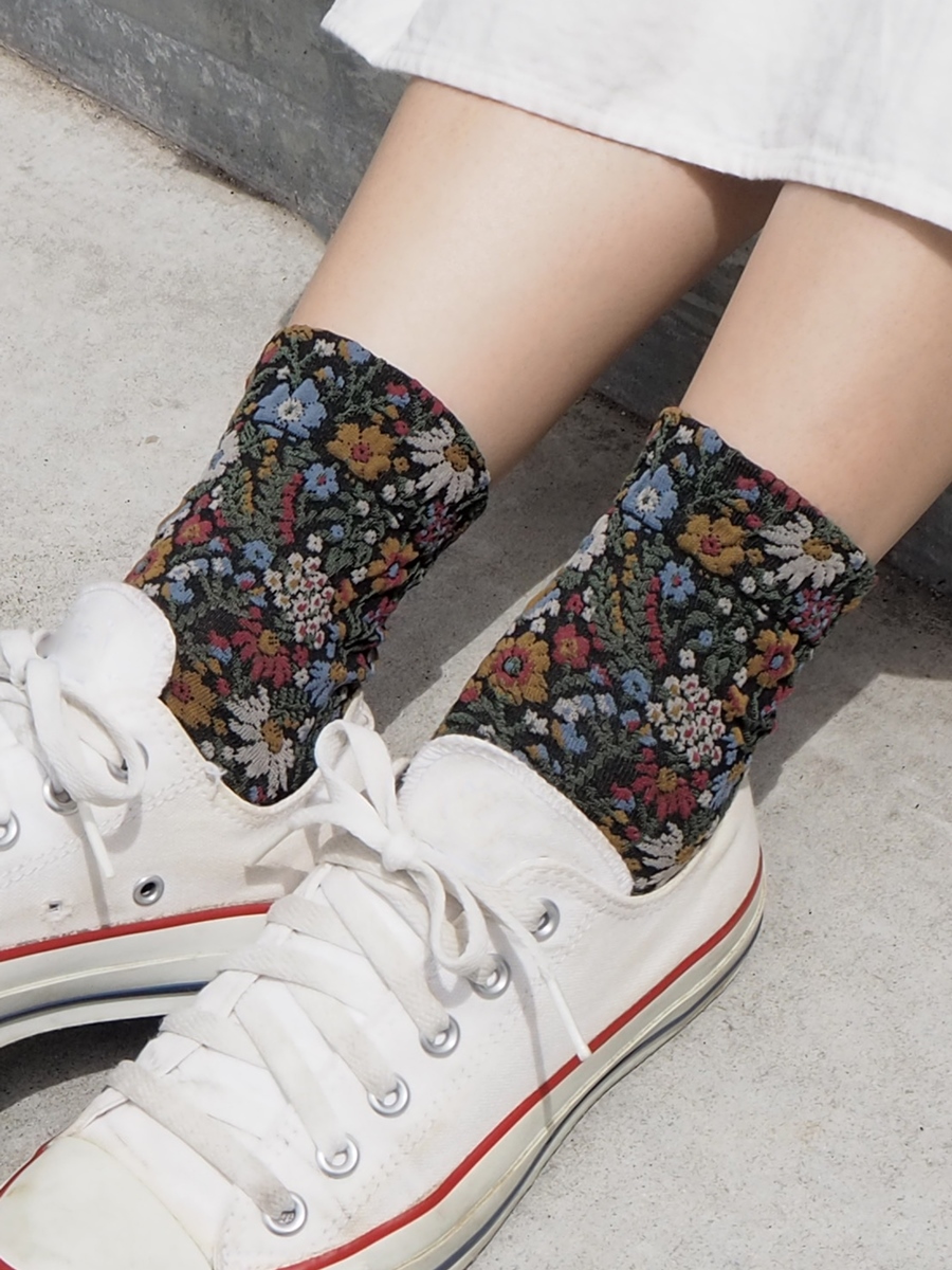 | 簡介 / | 日本 Tabio 立體針織花草圖騰中筒襪 12 Black:充滿秋天氣息花花草草,採用浮法針織,使花紋產生立體感顯得更加栩栩如生。以沉著溫暖的色系編織,華麗的花草也顯得更容易搭 |