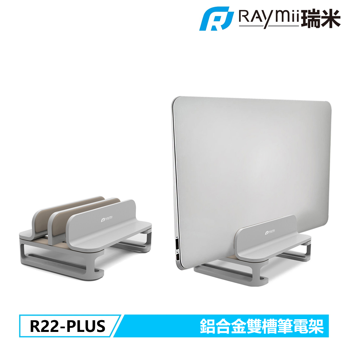 RAymii R22-PLUS鋁合金立式雙槽筆電架 銀色
