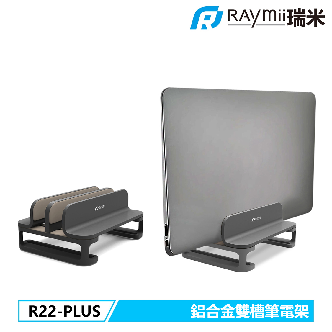 RAymii R22-PLUS鋁合金立式雙槽筆電架 灰色