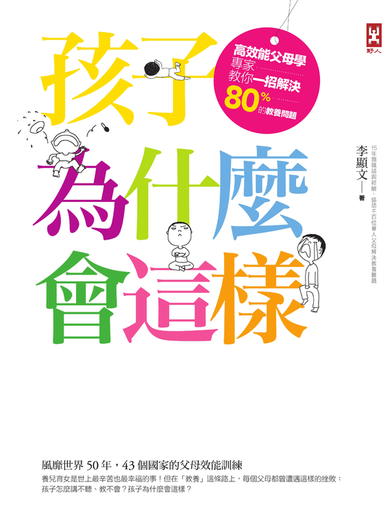 作者介紹 李顯文 15年親職諮詢經驗,協助千百位華人父母解決教養難題 輔仁大學企業管理系畢業,17年諮商輔導經驗,歷任:吉隆坡關懷輔導中心、怡保心燈輔導中心諮商協助員,現任「父母效能系統訓練課程」資深領導員。 1997年開始電話諮商工作;1999年開始帶領父母效能訓練課程;2009年起在大台北地區松山、新生、仁愛、文湖、實踐、國北教實小、公館、明倫、復興等10多所國小的讀書會、老師或志工媽媽團,以及新意象美術教室、鍥而生態讀書會、媽媽play教室、關心幼兒美語教室等團體,進行父母效能課程、父母成長課程、老師輔導課程及親職講座的工作。著有《高效能父母學》(野人文化) 菜媽的親職教養部落格 blog.xuite.net leestep2009 twblog 臉書粉絲專頁:顯文的高效能父母學園