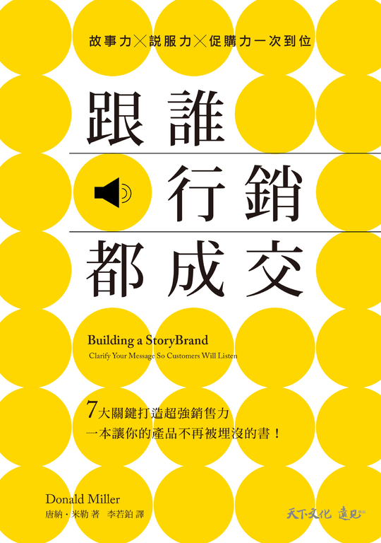 內容簡介 本書不提供試閱新行銷時代,如何說對故事?你需要一套掌握各種顧客心理的全新行銷攻略︰賣商品也賣改變的利器,能賺錢也能讓對方有贏的感覺。從煩惱賣不動到故事行銷高手,只有一本書的距離!「這本書讓你的產品不再被埋沒。」★暢銷100萬冊之後勵志書作家米勒新作★一出版即登上Amazon總榜TOP 20★商業寫作×顧客關係×網路行銷三分類TOP 1為什麼東西明明很好,卻賣不好?為什麼有人可以跟顧客做朋友,有人被討厭?你說了什麼,跟顧客聽到什麼,是截然不同的兩件事。你需要一套從顧客心理出發的新行銷法則,幫你精準傳達訊息,勾住欲望,讓商品大賣。每年都有很多產品在市場上大敗,不是這些產品不好,而是他們傳達訊息的方法不對。故事是許多行銷人公認最有力的溝通工具,不需解釋,人人能懂,又有記憶點。但你知道在新行銷時代,如何說對故事?有別於傳統行銷法,百萬暢銷書作家米勒針對銷售流程中顧客的各種心理,提出故事行銷的七大黃金法則,直擊你的思考盲區與銷售痛點,幫助你快速提升業績,成為團隊裡、同行中那個最會講故事的人,還可省下大筆的行銷費用、徹底擺脫過去低成效的行銷模式。做對這七件事,效果勝過所有行銷技巧的總和︰‧行銷第一步要確認你把訊息傳達出去,而不是用了哪些招數‧把顧客當英雄,將你自己定位為引導者‧強調產品攸關顧客的生存需求,文宣或網站再華麗也沒用‧訊息要夠簡單、易聯想、不會忘,否則顧客會把你消音‧讓產品化身為武器,供顧客用來擊退生活中的邪惡反派‧將「為什麼」送給顧客,讓顧客跟你買「怎麼做」‧不只賣商品,也賣改變人生的利器成功品牌與行銷高手都知道,要帶著「故事」而不是「麥克風」出現。你也要每一個產品做好準備,因為你很可能沒有第二次機會。名人力薦每個人都該讀年度最重要的一本故事行銷攻略。—《紐約時報》暢銷書作家拉姆西(Dave Ramsey)一本讓你的好產品不再被埋沒的書。幫助你在競爭中洞察新機會,以全新的行銷語言跟顧客溝通。—行銷大師高汀(Seth Godin)不僅教你銷售你的產品,也要教你改變顧客的生活。想讓商品熱賣,就必須在顧客的生活中扮演某個角色。—領導學大師麥斯威爾(John C. Maxwell)這本書提供的方法真的很管用,不僅讓我們公司的網站煥然一新,也徹底改變了我們與客戶的溝通方式。—《一分鐘經理》作者布蘭查(Ken Blanchard)這是我所知最好的行銷工具,我將它用在每一個新產品上。—《天王部落客教你把粉絲變成錢》作者海亞特(Michael Hyatt)社群媒體時代,行銷人必讀。—數位行銷人公司創辦人戴斯(Ryan Deiss)關於品牌行銷,我一直有些無法解開的困惑,但這本書讓我在幾個小時內就找到了答案。—西南管理顧問公司創辦人之一魏登(Rory Vaden)