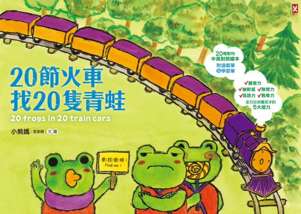 | 簡介 / | 20節火車找20隻青蛙 (電子書):暢銷得獎作家小熊媽(張美蘭)最新力作 中英對照繪本‧全方位培養孩子的5大能力 ✓觀察力 ✓幽默感 ✓聯想力 ✓數學力 ✓英語力 |