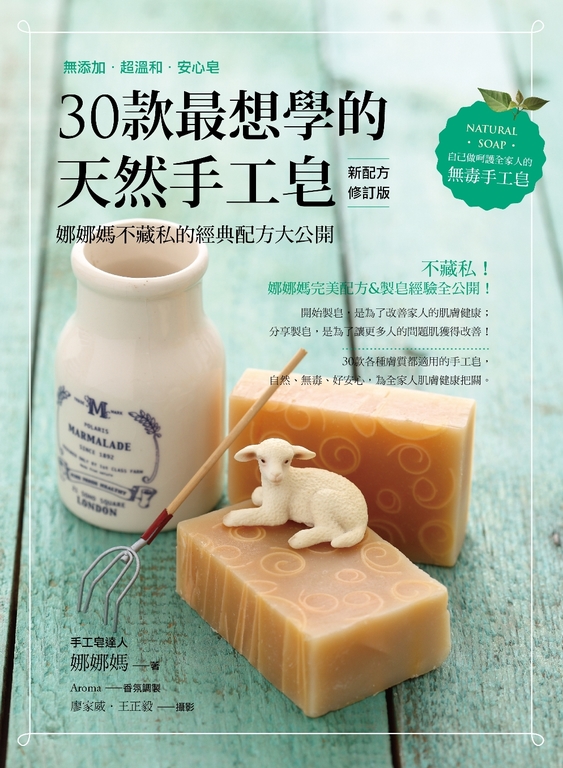內容簡介 <網路熱門渲染技巧全圖解>特別新增六款網友最想學的【渲染技法】,利用天然色粉入皂,傳授美麗花紋的訣竅。原來運用一點小技巧,就能讓皂與眾不同!「皮膚是活的,給什麼它都知道!」拒絕「有毒添加物」,自己動手做天然皂,最健康。 洗髮精、沐浴乳、潔顏乳、卸妝油、洗手乳、洗碗精……,你知道自己一天用了多少化學清潔劑嗎?為什麼罹患濕疹、異位性皮膚炎的人越來越多?皮膚乾癢抓不停,吃藥看醫生,卻依然無法根治?肌膚問題,有可能是因為長期使用化學添加物所造成的!自己做天然手工皂,自然、無毒、好安心,為全家人肌膚健康把關。「做手工皂真的不難,最難的往往是配方」書中介紹的每一款手工皂都是娜娜媽經過不斷調配嘗試,並且親自試用後所研發出的配方,充滿了娜娜媽研究的苦心,以及對家人的呵護。「30款最想學的天然手工皂」,不藏私的全公開,希望將這份呵護家人的心傳遞出去!【娜娜媽分享超過10年的製皂經驗,教你成功打皂不失敗!】◎做皂前,你一定要知道的事!在開始做皂前,了解並準備各項製皂的工具、材料、油品、精油等等,讓你第一次打皂就成功!◎製作適合自己膚質的手工皂不管你是油性肌、乾性肌、混合肌,或是想要改善痘痘、斑點、膚色蠟黃等問題肌,都能自己調配出最適合的手工皂。從洗臉、沐浴、洗髮等潔膚潔顏皂通通都能自己DIY。◎主婦們的真心推薦,清潔洗淨不傷手用洗碗精、清潔劑做家事,手變得粗糙乾裂?現在開始,改變你的清潔習慣,使用手工家事皂,不但不會對雙手造成傷害,清潔洗淨同時,也不擔心化學清潔劑殘留及汙染環境。 自己作皂的四大好處:1安心看得見自己親手做,了解油脂的特性、配方與製作過程,才能做出成分天然,質地溫和的清潔用品。2改善問題肌,調理好膚質手工皂並不是有神奇的魔力,能改善所有肌膚問題,它只是回到天然原始的清潔方式,杜絕了化學添加物的接觸,並且溫和洗淨不刺激,讓肌膚代謝正常。3為環境保護盡一份心力許多市售清潔劑所含的成分無法被自然界的微生物分解,造成生態環境的危害。為了讓下一代,請改用天然無毒的手工皂吧!4「打皂」小幸福「當你看到身邊的人,喜歡用你做的手工皂,甚至讓肌膚問題獲得改善,你就會越打越上癮!」一塊手工皂,包含了你對親朋好友的呵護與關心。 本書特色【特色一】不藏私!30款最想學的手工皂!第一次做皂不知從何入門嗎?有做皂經驗,但是無法自行調配或是找不到合適的配方嗎?想要嘗試製作更多不同的皂款嗎?娜娜媽不藏私的配方大公開,收錄30款你最想學的手工皂!【特色二】天然食材入皂,溫和好安心超過十年的作皂經驗,娜娜媽除了堅持全程使用「冷製法」外,還不斷研發運用新的材料,像是潔顏皂加入苦瓜水、絲瓜水,可以給肌膚多一份呵護;家事皂加入馬鈴薯、橘油,可以增加清潔去污的效果,更不用擔心化學添加物的殘留,溫和好安心!【特色三】簡單小技巧,做出多變「皂型」想要讓手工皂有多變的造型,除了運用皂模、皂章塑型之外,娜娜媽教你利用渲染法、分層法、加入皂片與皂條等等小技巧,讓你的手工皂更添豐富多變的造型!【特色四】專業調香師香氛指導專業調香師Aroma老師跨刀香氛指導,與娜娜媽一起運用天然的精油,打造出充滿芬芳香氣的幸福手工皂。