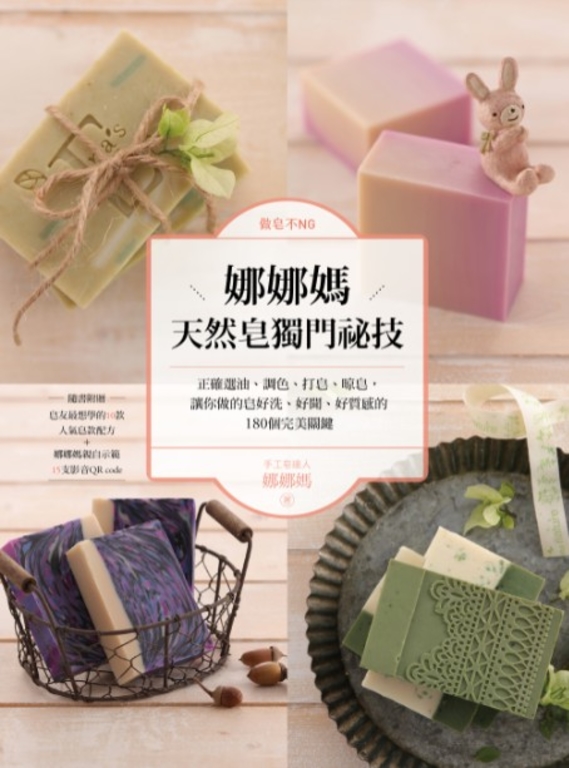 作者介紹 手工皂達人──娜娜媽開始接觸手工皂,只是單純的想改善女兒的肌膚問題,又因為不想浪費母乳,而學習製作母乳皂,沒想到就這麼投身皂海十二年。總是熱心宣傳手工皂的好處、不吝分享交流皂的製作方式,成為許多皂友的學習對象。每當聽到大家說:「娜娜媽的配方很好洗」,或是「我的肌膚問題因為用了手工皂而獲得了改善」,就是對她最大的肯定。希望持續透過自己的創作與經驗分享,讓越來越多人能愛上手工皂,也希望讓皂的美好能進入到更多人、更多家庭的生活裡。著有《娜娜媽的天然皂研究室》、《一次學會5大技法!達人級手工皂Guide Book》(合著)、《30款最想學的天然手工皂》、《娜娜媽教你做超滋養天然修護手工皂》、《自己做100%保養級乳香皂超簡單》。 娜娜媽皂花園 www.shop2000.com.tw enasoap 部落格 enasoap.pixnet.net blog FB粉絲團 www.facebook.com enasoap