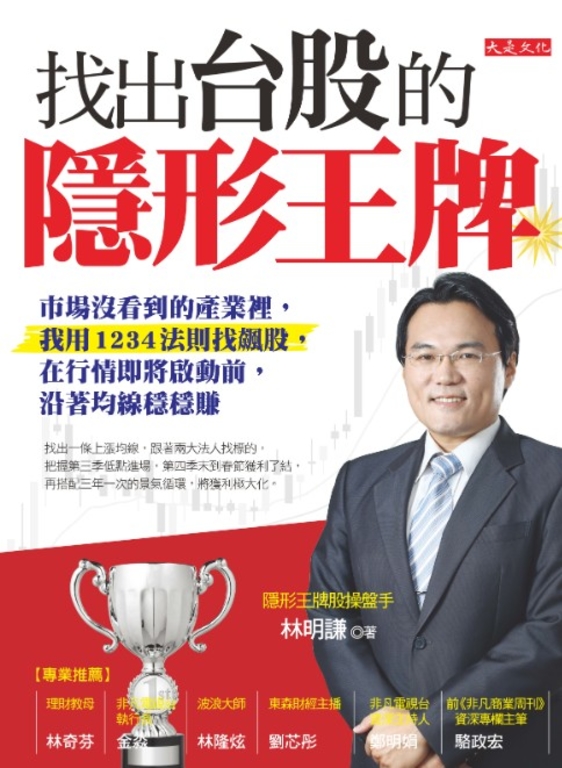 內容簡介 台股每3年就可能出現30%漲幅,下波萬點反攻行情即將啟動!你準備好了嗎?◎祥碩(5269)、智崴(5263)、力旺(3529),沒聽過? 他們並非熱門權值股,卻能讓你一星期報酬率勝過定存20年。◎金融海嘯後,大家都說別碰DRAM 產業,但華亞科(3474)、南亞科(2408) 卻在一片慘澹中逆勢上揚,兩個月漲46%,你沒發現?◎大家都說危機入市,問題是怎麼入、何時入?鴻準(2354)、頎邦(6147)、 潤泰新(9945),都在歐債風暴過後大漲超過40%,你還是沒賺到? 隱形王牌股操盤手林明謙說,與其殺紅眼追逐大家搶著買的熱門股,不如從別人尚未發現或不看好的產業裡,提前找到可能飆漲的隱形王牌。 林明謙,現任大慶證券自營部主管,從事證券研究與自營操盤投資經驗20年,2012年閃過歐債風暴、台股1,600點的連日崩跌危機!2015年更精準判斷台股會出現萬點行情,結果加權指數確實見到10,014高點。林明謙認為,只要抓穩長期被主流忽視的隱形王牌 (多半非權值股) ,股價三個月就能飆漲四倍,平均每個月成長70%到80%!但這些股票要去哪裡找?行情即將飆漲前又有哪些訊號?他歸納出簡單的1234法則:找出一條支撐均線,跟著兩大法人找標的,把握第三季低點進場,第四季末到春節獲利了結。再搭配三年一次的景氣循環,就能獲利極大化。◎自創1234法則,隱形王牌立刻現形 只需一條均線,跟著兩大法人挖寶。 .隱形王牌有個共通點──會沿著五日均線向上飆。只要沒跌破均線超過兩次, 都要穩穩抱牢。 .跟著市場上兩大法人搶先布局,尤其投信較少隨市場炒作,一買就是一、兩季起跳, 用作者自創的投信買超成交量比,就能早一步挖到寶。 (最近投信買超哪幾檔,本書報給你知曉)◎跟著月份效應走,空手等大跌 你得第三季進場,在第四季到第一季(春節左右)賺飽下車。 .作者連續17年統計發現,每年台股第一季平均月報酬率為6.3%,第四季為3.5%, 均高於二、三季。 .所以利用二、三季觀察(空手),找出不再破底的強勢股, 再搭配年底與春節的紅包行情,權值股都能變飆股。 怎麼找?問三個問題幫你真正危機入市。 ◎出清靠紀律,賠最少;空手要勇氣,賺最多 .股票開始飆,如何切入?你得有狙擊手的耐心,再強的股票也會拉回整理,別追高。 .如何知道要下車?跌破兩次支撐均線就是警訊,第三次就快跑。 聯發科(2454)與昔日股王宏達電(2498)不是崩跌,而是有跡有循。 .市場會循環,每次歷時三年到四年,下跌修正需一年,上漲得花兩年, 空手等低點浮現才能賺更多。林明謙大膽預言──台股每三年就可能會出現30%的漲幅,下一波萬點行情即將啟動!你做好準備了嗎?