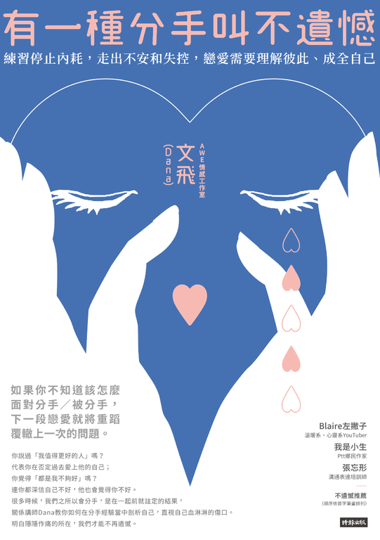 內容簡介 如果你不知道該怎麼面對分手/被分手,下一段戀愛就將重蹈覆轍上一次的問題。你說過「我值得更好的人」嗎?代表你在否定過去愛上他的自己;你覺得「都是我不夠好」嗎?連你都深信自己不好,他也會覺得你不好。很多時候,我們之所以會分手,是在一起前就注定的結果,關係教練Dana教你如何在分手經驗當中剖析自己,直視自己血淋淋的傷口。明白隱隱作痛的所在,我們才能不再遺憾。★★ 不遺憾推薦(順序依首字比畫排列)──溫暖系、心靈系YouTuber|Blaire左撇子Ptt鄉民作家|我是小生 「分手,不過是動身前往最美風景的必經旅程。」溝通表達培訓師|張忘形不怪你,也不怪他,即使分手,我們也要能夠理解彼此為什麼做出這樣的選擇關於「內耗」──因為害怕受傷,內心產生的無限小劇場。剛剛的語氣很差,是不是覺得我煩了?最近對我很冷淡,是不是外面有女人/男人了?他這樣講話一定是因為他在嫌棄我,原來我在他心中這麼不美好。為什麼這麼不公平?為什麼總是我在承受?我一定要討回一點公道!在感情狀況不如預期的時候,我們容易把對方當成大惡人。啟動保護自己的機制,進入受害者的角色,逃避去理解他的立場和選擇。關於「盲點」──你想要做的,跟真正做的不一樣給沙漠中快要渴死的人一百萬,覺得我對他很好吧!當他說「我不要一百萬拜託給我一杯水」的時候,憤怒的問著:「我給了你我的所有你為什麼還不滿足?」從「為什麼我都做成這樣了還不夠!」轉變到「原來我並不是做對方希望我做的事,而是我自以為好的事。」關於「正確解答」──沒有什麼比較好或比較壞橘子和蘋果哪個是最棒的水果?我喜歡橘子的多汁,可是它不脆;我喜歡蘋果的脆,但它不多汁。我沒辦法做決定,為什麼不能又脆又多汁?如果你喜歡橘子的多汁,就接受它不脆;如果你喜歡蘋果的脆,就接受它不多汁。停止尋找唯一正解,你用什麼觀點決定你的答案,再好的事都有必須付出的代價。