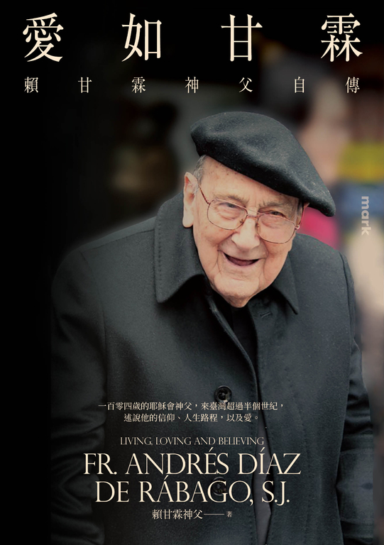 作者介紹 賴甘霖神父Fr. Andrés Díaz de Rábago, S.J.西班牙文全名是Andrés Diaz de Rábago,一九一七年十月三日,誕生於西班牙西北部的小鎮卡瑞米娜(Caramiñal)。父母是熱忱的基督徒,家族在當地投入公益,十分有名望。家庭使神父自小接受天主教教育,醫學院畢業後他在薩拉曼卡(Salamanca)進入耶穌會,並以修士的身分 取得馬德里大學的醫學博士學位。 他在一九四七年抵達中國,準備以醫術傳揚天主的福音;孰料一九四九年共產黨赤化中國,於一九五二年晉陞鐸品後,隨即離開中國。然後在菲律賓九年、東帝汶八年,在修院任行政與教學職務,前後培養出三位主教,其中一位是諾貝爾和平獎的得主貝羅(Carlos Ximenes Belo)主教。此外,他的學生裡還有一位古斯茫 (Kay Rala Xanana Gusmão), 成為日後東帝汶建國的國父。 一九六九年來到臺灣。他從一踏上這裡的土地,就聯結了童年聽到的「福爾摩莎」以及中國和遠東的記憶,愛上了這裡熟悉又特別的環境、氛圍和人。在超過半個多世紀的時間裡,臺灣成為了他的家鄉。 二O一九年,賴甘霖神父成為臺灣的公民,並且在二O二O年行使公民權利,投下總統選票。 耕莘文教基金會曾為他出版傳記《我的可愛——天賜甘霖》,光啟社曾拍過紀錄片《愛,源源不絕》。