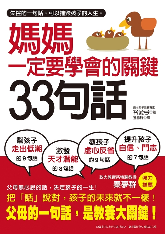 商品描述 | 媽媽一定要學會的關鍵33句話 (電子書):媽媽的口頭禪,影響孩子的一生。父母「講出來」的話,決定孩子的品格與成就。愛說謊、沒禮貌、頂嘴、唱反調…,孩子的這些舉動常常 |