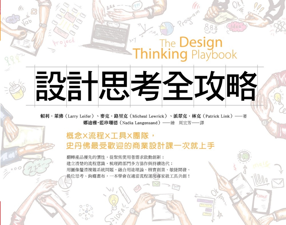 作者介紹 賴利・萊佛(Larry Leifer),設計思考的創始人之一,在史丹佛大學設計學院(d.school)教學,任機械工程設計教授。他是史丹佛的哈索・普拉特納(Hasso Plattner)設計思考研究課程創設總監。麥可・路里克(Michael Lewrick),國際講者;在多所大學擔任客座教授,講授設計思考;著有《設計思考:數位化世界的激進創新》(Design Thinking: Radical Innovations in a Digitized World)。派翠克・林克(Patrick Link),琉森應用科學大學(Lucerne University of Applied Science)科技與建築系產品創新教授與系主任。頻密參與產品管理、設計思考和精實創業的敏捷開發法發展工作。
