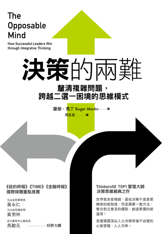 內容簡介 世界愈來愈複雜,最佳決策不是靠更精密的做取捨,而是需要一套方法,整合對立意見的優點,創造更優的新選項!首度揭露頂尖人士決策背後不自覺的心智習慣,人人可學。Thinkers50 TOP1管理大師 決策思維經典之作《紐約時報》《TIME》《金融時報》重點推薦「上千本書在探討優秀執行長為什麼厲害,只有這本書真正解答這個問題。」──葛拉威爾,暢銷作家本書作者羅傑‧馬丁以策略思考見長。企業與管理學界一片強調執行力、研究策略、大談該做什麼,但是實際成功的案例卻有限。馬丁提出了不同的思考:更關鍵的是怎麼想。優秀的領導者如何思考而引導出行動,比領導者做了什麼更重要!從思維切入,馬丁不只提出整合性思維,更率先提出設計思考,回應不同時代的思考痛點,長年盤踞Thinkers50全球管理大師排行的第一名。複製的策略不會贏,仿效的執行力不到位。了解最強者行動前如何思考的過程,才能找出自己獨有的勝出之道!一般人經常陷入非A即B、涉及愈廣愈難取捨的困境,但是馬丁發現許多頂尖人士不但能突破選擇僵局、甚至能在複雜中創造出更好的選項。他訪談從旅館服務、零售消費品、到表演藝術等不同領域五十多位頂尖人士,拆解他們在面對困難問題時背後的思考過程,發現他們都有類似的思考習慣與思維模式,也就是能夠融合對立的觀點、找出兼具兩者優勢的整合思維。馬丁發現這些擅長整合思維的頂尖者的思考習慣不同: 不怕複雜、拒絕簡化。 給自己足夠的時間找出沒有人看見的新可能。 碰到不同的觀點不用怕,矛盾就是新的施力點。馬丁進一步將整合思維拆解成步驟,每個人都能看見自己的盲點,創造新選項: 考量重點:面對問題第一步是界定範圍,明確列出所有影響因素。 因果關係:思考重點之間的各種關聯,描繪出關係地圖。 決策架構:找出因果關係,才能確立問題的架構,決定該採取什麼解決途徑。 解決方案:找不到最佳方法時,隨時可以回到前面步驟,重新衡量決策過程的每一步。好評力薦玉山金控董事長 黃永仁、玉山金控總經理 黃男州成大藝術中心藝術長 馬敏元 *原書名為《別在夾縫中決策》