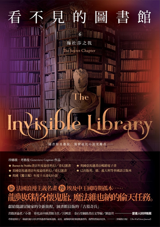 內容簡介 偷 法國浪漫主義名畫 換 埃及中王國時期孤本⋯⋯龍與妖精各懷鬼胎,魔法維也納的偷天任務。★Barnes & Noble書店年度最佳科幻/奇幻選書★美國亞馬遜書店年度最佳科幻/奇幻選書★英國《獨立報》年度十大奇幻小說★英國亞馬遜書店暢銷電子書★已出版英、德、義大利等多國語言版本隱藏在世界之間的大圖書館,負責保管各個世界裡珍本中的珍本。其中偶有獨一無二的特殊版本,甚至能影響所在世界。圖書館員則身懷重任,前往不同時空,尋書收藏。知曉內情的人們,通稱大圖書館為「看不見的圖書館」。在各個平行世界間,龍族崇尚秩序,妖精擁抱渾沌,大圖書館則是平衡兩者的中立力量。艾琳獲選為大圖書館代表,在遵守監督協議之外,還要繼續出勤圖書館員任務。此刻她曾經就讀寄宿學校的世界,正遭受渾沌威脅,解決之道是一本獨一無二的古埃及文學——《船員的船難故事》⋯⋯然而這本書卻落在某個狡詐難纏的妖精收藏家手上,作為交換條件,艾琳得和一群各懷鬼胎的妖精與龍組隊,前往某個世界的維也納,偷取一幅傑利柯的名畫〈梅杜莎之筏〉。而這個科技取向的維也納,卻充滿超自然生物,還有獵捕超自然生物的「審查者」組織,甚至還有龍族長住。這個維也納,一定有什麼蹊蹺⋯⋯〈本書特色〉在系列中,作者珍娜薇.考格曼不時流露出對閱讀的熱愛。堅強的主角艾琳,就像圖書館員版的「古墓奇兵」,聰明、獨立、能面對尋書任務中的任何挑戰。跟著她,讀者將邂逅媲美福爾摩斯的偵探、行經飛船劃過天際的倫敦,並穿梭於不同時空的奇幻世界。「看不見的圖書館」是獻給閱讀冒險家的全新旅程。〈推薦〉愛書人好評推薦書籍評論者 小部彰化高中圖書館主任 呂興忠金石堂網路書店文學線 劉盈萱(依筆畫排序)看不見的圖書館系列書評推薦「考格曼充滿生氣與機智的文字為這個類型帶來了新氣象⋯⋯讓人聯想起黛安娜‧韋恩‧瓊斯和尼爾‧蓋曼的作品。考格曼的小說是閱讀的一大樂趣。」——《出版人週刊》(Publishers Weekly)「愛書人一定會為這本迷人的初試啼聲之作瘋狂,考格曼在這部作品裡成功滿足了有趣奇幻的條件。善於謀略的角色們與輕快的動作場面,都在這個引人入勝、架構迷人的世界裡。」——《圖書館期刊》(Library Journal)「令人滿意的綜合體⋯⋯這本書讓人沉迷。」——英國《衛報》(The Guardian)「與黛博拉.哈克妮斯的《魔法覺醒三部曲》一樣⋯⋯現代背景遇上童話故事!」——《大誌》雜誌(The Big Issue) 「這部機智風趣的奇幻裡面有福爾摩斯式的偵探、奇妙的魔法列車、讓人著迷的妖精政治、逗趣的橋段,以及為了在有限時間內營救凱,艾琳所經歷的驚險迷人冒險。」——《軌跡》雜誌(Locus)「這個系列的書迷會很興奮能更深入認識龍族及善變的妖精,而且會超級期待下一集。」——《書單》雜誌(Booklist)「考格曼能在打造出色獨立小說的同時,利用角色間不斷成長的關係聯結整個『看不見的圖書館』系列,讓人印象深刻!」——《扉頁》雜誌(BookPage)「⋯⋯從頭到尾充滿了動作場面,無論是艾琳或各位讀者都難以獲得喘息的片刻。」——The Book Plank 網站「作者的行文充滿速度感及節奏感,讓你在這整場熱鬧非凡的冒險中都興奮不已!」——The Fantasy Book Review 網站 「如此機智,同時又讓人毛骨悚然,還有精心建構的世界觀與伶牙俐齒、聰明又性感的角色們!」——雨果獎得主、「繼承三部曲」作者 潔米欣(N. K. Jemisin) 「耀眼的愛書人出道作。」——雨果與軌跡獎得主 查爾斯‧史卓斯(Charles Stross)
