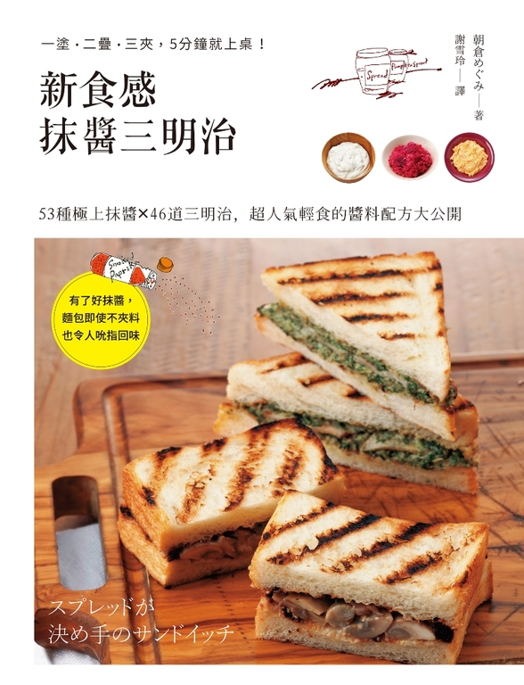 內容簡介 三明治是野餐、派對最佳美食!令人吮指回味的美味靈魂就在「53道極上抹醬」裡走遍歐洲、中東、亞洲的旅行美食家,精心研發異國三明治大集合((((( 在家獨享世界美味!打造前所未有「新食感」)))))鮮蝦酪梨三明治、茄子豬肉片三明治、海膽番茄三明治韓國泡菜燒烤三明治、香菜薄荷雞肉三明治草莓優格三明治、水果紅豆泥三明治((((( 一抹好滋味‧輕食新提案 )))))為什麼國外影片裡野餐、派對的食物都看起來那麼好吃?每天早餐三明治只能這幾款嗎?這項人人愛吃的食物,美味靈魂其實在於「抹醬」!本書獨家蒐集全球各地的調味好點子,變化出53種抹醬食譜、46道能立即上桌的三明治菜單,帶來輕食全新體驗。蔬菜‧海鮮‧肉類‧水果‧起司‧香草‧無國界調味用意想不到的食材做成抹醬,居然超、好、吃!早餐、派對、野餐、下酒菜,輕鬆做出最省時的享樂料理獨家限定!外面買不到的絕品三明治【甜菜根馬鈴薯三明治】甜菜根馬鈴薯抹醬+蒔蘿奶油【派對三明治捲】羅勒味噌抹醬‧蜂斗菜青豆抹醬【竹筴魚乾三明治】竹筴魚乾抹醬+綜合胡椒美乃滋【英式加冕雞沙拉三明治】咖哩洋蔥抹醬+檸檬奶油【土耳其鷹嘴豆泥口袋餅】鷹嘴豆泥抹醬+辣味番茄抹醬●一塗‧二疊‧三夾,5分鐘就上桌!人氣店家才吃得到的「完美三明治」,製作技巧大揭密!1、抹醬濃度剛剛好,才能和麵包美味相遇——抹醬必須符合三明治需要的濃度否則容易讓口感變差。2、用「油」包住食材,水分是頭號敵人——抹醬中的油類可以包住食材,避免麵包變溼軟影響味道。3、抹醬厚度有學問——中間厚、四周薄,較稀的抹醬薄薄一層就好,固態的醬重複多塗幾層更好吃。4、加壓力道大大影響口感——蓋上紙巾或保鮮膜,放重物加壓三明治5~15分鐘,讓食材和麵包緊緊密合。5、完美切面來自「刀的溫度」——將水煮沸用蒸氣加熱菜刀,擦乾水分再使用便能切出漂亮的切面。●柔順vs.顆粒、濃郁vs.清爽,口感自行調配<攪拌>以奶油或美乃滋、優格為基底的抹醬,只要將材料倒入碗中,用湯匙或抹刀拌勻即可。<研磨搗碎>以磨缽搗碎,可以徹底釋放食材香氣,特別是有使用香草時建議一定要以磨缽研磨。<壓碎>燙好的蔬菜如南瓜或馬鈴薯等,用木鏟或湯匙壓碎,能保留食材塊狀口感。<食物攪拌器、調理機>省時輕鬆做抹醬,根據食材特性會產生滑順或顆粒口感。抹醬不論直接塗在吐司上,或是搭配其他食材夾料都很適合。除了三明治,也可以塗在不同種類的麵包、餅乾上,甚至能用來做義大利麵、沙拉、湯品、焗烤、料理調味醬等,增添各種食物美味。●在家獨享世界美食——3步驟,新食感三明治誕生<塗醬+疊料+夾麵包=前所未有的幸福口感> 只要先做好抹醬,5分鐘就能快速完成一道賣相超棒的宴客料理。每道抹醬都貼心標示保存期限、分量,並設計對應的三明治食譜,讓人不必再費心設計菜單,短時間變出豐盛餐桌。 作者以留學經驗和美食家的味覺,融合英國、德國、義大利、法國、美國、日本、韓國、中國、中東及東南亞各國的特色美食、異國調味料和料理手法,變化出抹醬甜、鹹、酸、辣的驚奇新食感。【本書特色】特色1<抹醬就是主角>決定三明治美味的關鍵就是抹醬!因此本書從53種抹醬為起點,創造出各式各樣的三明治。詳細介紹各種抹醬需要的材料、作法、保存期限,作法非常簡單,輕輕鬆鬆就能做出獨家限定的口味。●海膽抹醬●茄子抹醬●竹筴魚乾抹醬●羅勒味噌●薑泥奶油●彩椒抹醬●紅鮭抹醬●酸奶油藍起司特色2<意想不到的食材&異國風味>使用三明治少見的食材,如甜菜根、海膽、茄子、薄荷、生薑、酪梨、竹筴魚等,運用多元的調味料和料理手法,做出歐洲、中東、中華、東南亞、和風口味的特色抹醬。特色3<快速‧簡單‧低熱量>預先做好抹醬,可以成為救急好幫手,忙碌的早晨、下午茶、招待客人、下酒菜等,3步驟就能做出誘人三明治!吃起來清爽無負擔,自製醬料更是提升輕食質感,使人享受假日般的悠閒感。