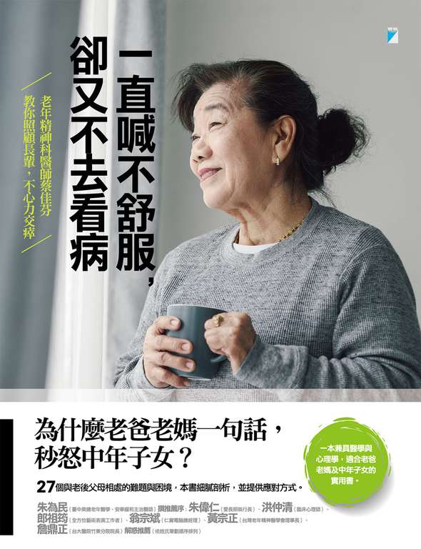 | 簡介 / | 一直喊不舒服,卻又不去看病 (電子書):為什麼老爸老媽一句話,秒怒中年子女?27個與老後父母相處的難題與困境,臺北榮總老年精神科主任蔡佳芬醫師細膩剖析,並提供應對方 |