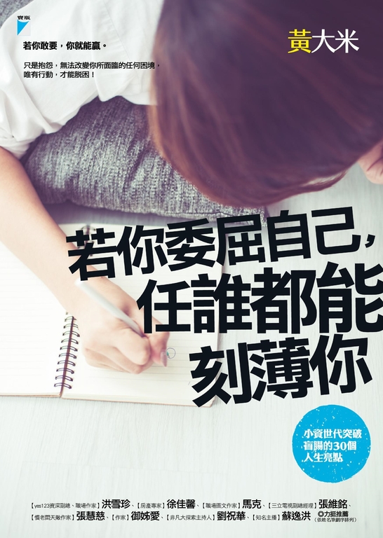 | 商品描述 | 若你委屈自己,任誰都能刻薄你:小資世代突破盲腸的30個人生亮點 (電子書):當了多年記者,在人來人往的電視圈、求職場上「閱」人無數的黃大米,以三十個生活周遭發生的真 |
