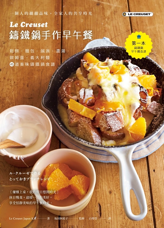 內容簡介 ★第一本鑄鐵鍋早午餐食譜★〔一個人的細細品味、全家人的溫暖共享〕優雅上桌‧我的假日悠閒時光休日慢食,迎接一日的美好享受恬靜美味的早午餐時光人氣料理家的45道經典早午餐料理輕鬆學 ◎中式.西式.甜食.鹹點.湯品──45種經典早午餐料理,風格多變,滿足你的味蕾 慵懶的假日早晨,想要在家就能享用到新鮮出爐的麵包,或是人氣咖啡店的鬆餅、法式吐司;炎熱的夏日裡,清爽的沙拉帶來無負擔的美味;寒冷的冬天,煮一鍋暖胃、暖心的濃湯、熱粥,全身都跟著溫暖了起來。45道早午餐食譜,滿足你對美味的需求,為整日帶來滿滿的元氣與能量。 【人氣美味】藍莓鬆餅、西班牙半熟烘蛋、英式麵包布丁、雙重起司舒芙蕾 【健康清爽】炙烤綠蘆筍沙拉、摩洛哥沙拉、干貝海鮮粥、普羅旺斯蔬菜湯 【豐盛飽足】法式洛林鹹派、乳酪通心麵、檸檬香茅雞肉蒸飯、菠菜鮮菇螺旋麵 ◎平底鍋、圓鍋,利用兩種鍋具,營造一桌的美味 本書以Le Creuset鑄鐵平底鍋、圓鍋為主要示範的鍋具,利用兩種不同鍋器具的特性,就能做出多變的早午餐,是一本充分展現鑄鐵鍋優點的早午餐食譜。 ◎造型瓷器,兼具耐熱及耐冷能力 造型瓷器最大的魅力就是不易刮傷,且不容易沾附食物的氣味及顏色,並兼具耐熱及耐冷能力,可承受負20度到260度的溫度範圍。不僅能用在微波爐、烤箱、壓力鍋,也可以放進冷藏室和冷凍室,另外,還可用於洗碗機、烘乾機等等,十分方便。繽紛優雅的色彩,為廚房和餐桌妝點上時尚亮眼的氣息。 ◎LC鑄鐵鍋的四大特點 LE CREUSET所生產的是以「鑄鐵」鍛造的「琺瑯鍋」,設計感十足,時尚簡約。不僅可用於煎煮,還可耐烤箱高溫,一鍋到底、直接上桌,為你的料理加分。其具有以下4大特點: 特點1:導熱性佳,做出外香脆、內鬆軟的鬆餅、歐姆蛋 導熱快、保溫性能佳,能將食物表皮煎得香脆,但裡面仍保持鬆軟,適合用於製作鬆餅、歐姆蛋等輕典早午餐,帶來蓬鬆可口的口感,平坦厚實的鍋底,還能為食物烙下美味的褐色烤痕。雖然需要花一點時間熱鍋,不過由於鍋體的厚度相同,導熱效果比一般平底鍋更均勻,還能幫助食材釋放出鮮美及甘甜。 特點2:多孔珐瑯塗層,不易沾黏食材 表面是呈現凹凸狀的多孔珐瑯塗層,不易沾黏食材,能輕鬆的為肉品上色。鍋子就像是經過長期使用一般,油脂能夠均勻的分布於表面的孔隙。香料等食材色素不易沉積,不會出現明顯的污漬。而且珐瑯塗層不容易因為溫度變化而剝落,非常耐用。 特點3:保溫效果高,經濟節能 優於一般平底鍋的保溫能力,讓菜餚不易冷卻,保持溫熱的美味。另外,小火即能烹調,帶來經濟節能效果。 特點4:鎖住食材營養,完整保留食物美味 導熱均勻,能將火力緩緩的傳導進食材,緊緊鎖住食材的營養。此外,厚重的鍋蓋能夠留住水蒸氣,保留食材原有的美味。本書特色 1、第一本鑄鐵鍋早午餐食譜 不管是鑄鐵鍋新手,或是Le Creuset鑄鐵鍋愛好者,都能從這本書中得到前所未有的幸福美味。 2、豐富多變,45道吃不膩的美味 麵包、鬆餅、濃湯、烘蛋、沙拉、粥飯、義大利麵等等,種類豐富,每天都能做出吃不膩的早午餐。 3、各國風味,一次收藏 美式鬆餅、英式麵包布丁、希臘口袋餅、法式鹹派、西班牙半熟蛋餅、普羅旺斯蔬菜湯等等,不用到專門的特色餐廳,就能享受到世界各地的特色早午餐。 4、細緻擺盤,為餐點增添美味魔法 簡單細緻的擺盤,就能帶入生活品味,讓用餐成為一種幸福享受。美味推薦 《珈常日々雜話曆》鑄鐵鍋料理分享家--Roka 知名生活料理部落客──鐵雄