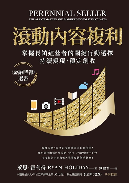 內容簡介 《金融時報》推薦選書爆紅吸睛,但是能持續銷售才有真價值!運用複利概念,從策略、定位、行銷到建立平台深度經營內容變現,穩穩滾動創造獲利!潮流翻新愈快,爆款的生命週期愈短。有沒有另一種經營方式?如何脫離「更多產出、更賣力行銷、一再下殺出清」的惡性循環?● 也許你沒聽過「鐵娘子樂團」,但它在Spotify上的累積串流量勝過瑪丹娜,連女神卡卡都佩服得說要看齊!● 電影《刺激1995》首映時名列票房毒藥,但30年來默默滾動,進帳超過一億美元,成為影史經典!● 《星際大戰》首部曲一開始乏人問津,四十年來粉絲支持不減,續集、授權商品不斷累積,成為高價值的經典。長銷,需要不同的深度經營能力!匯聚正確的思維、流程和商業策略,滾動出粉絲不滅的複利效應!本書作者霍利得是《金融時報》、《高速企業》、《Inc.》公認的媒體策略專家和著名財經作家,行銷方案曾被Twitter、YouTube和Google列為研討案例,他將告訴你打造長銷經典的祕密,教你創作出色內容、催化複利效應的箇中門道。當你走上創作之路,霍利得的長銷模式,指引你從內容、定位、行銷、平台四大方向入手,錘鍊傑出的作品,讓它能持續被看見、被使用,受人喜愛,廣為流傳,繼而觸發購買行為,不停創造收入。你的關鍵行動選擇有:● 內容:持續創作受歡迎的不變主題,擊中目標受眾的甜蜜點或解決痛點● 定位:尋求外部觀點,保持開放,積極合作,善用吸引力創造作品共鳴● 行銷:找到對你作品上癮的人,擴散高評價口碑,聯合媒體夯實影響力● 平台:水平垂直整合跨界內容生態系,養成高忠誠度鐵粉,變長期價值霍利得訪談、引述許多製作人、經紀人、行銷人、作家、公關、創業家、企業主和學者的實戰經驗,能啟發你如何打造經得起時間考驗的經典,讓作品自創作起到完成推出,共鳴度持續綿延不絕,人流、金流自動滾進,眾多精采的舉例如:● 《連線》雜誌創辦人凱利的一千個鐵粉理論,教你建立基本盤,先有一份可靠收入。● 樂壇天后愛黛兒淘汰無數演唱樣帶,才發行滿意的專輯,第一週就拿下三百多萬張唱片銷量佳績。● 《牧羊少年奇幻之旅》作者科爾賀翻轉盜版危機,累銷近一億六千五百萬冊,長年風行全球。想成為內容長銷經營者的一員,你可以現在就開始行動!M觀點創辦人、科技巨頭解碼主筆 Miula數位轉型顧問 李全興(老查)網路企業策略主管、時尚集團總監、暢銷書作家、傳奇樂團歌手各路高手爭相推薦「霍利得的寫作向來融合深入而透徹的逆向思考,佐以充滿趣味的小故事。本書也延續了他固有的風格。」──瑞奇・凡・文(Ricky Van Veen),CollegeHumor、Vimeo共同創辦人,Facebook全球創意策略負責人「霍利得的新書是一張終極地圖,幫助你的作品和訊息持續發酵,長長久久。」──安雅・卡耐(Aya Kanai),《柯夢波丹》、《十七歲》(Seventeen)、《紅書》(Redbook)、《女性時代》(Woman’s Day)時尚集團總監「這是霍利得最好的作品。也會是一本長銷經典。書裡提到的觀點可做為真實世界創作的指引。」──詹姆斯・阿圖徹(James Altucher),暢銷書《雞窩頭下的金頭腦:給魯蛇們的31道成功啟示》(Choose Yourself)作者「本書深入探討每個相關元素,直指核心,竭力為創意人取得長期成功。」──大衛・札克曼(David Zuckerman),「蓋酷家庭」(Family Guy),「美國老爹」(American Dad),「犬人笑傳」(Wilfred)編劇及創作人「你找不到比本書更好的指引了!霍利得是當代最傑出的行銷思想家之一!」──強・高登(Jon Gordon),暢銷書《能量巴士:讓好運上車,壞運閃邊》(The Energy Bus)作者「創意的價值在於實現。霍利得以本書讓你看到,在當代想成為成功的創作人,一針見血的必備策略。」──傑克・烏岱爾(Jake Udell),第三腦(TH3RD BRAIN)創辦人,音樂家Grace VanderWaal、Gallant、ZHU及Krewella的經理「如果你想寫作、製作或創作出色的作品,讀這本書就對了。」──詹姆斯・弗雷(James Frey),暢銷書《歲月如沙》(A Million Little Pieces)、《明亮早晨》(Bright Shiny Morning)作者「本書是霍利得思考的完美呈現,這是一份珍稀的禮物,是通往成功的地圖,也是對人生的洞察。」──羅伯特・克爾森(Robert Kurson),《紐約時報》暢銷書《影子潛水員》(Shadow Divers)作者「對於那些有勇氣堅持下去、放棄立即的回報、追求深度原創作品的人,本書不只讓你知其所以然,還指點你方法。這是所有創作者都應該讀的書。」──尚恩・科以恩(Shawn Coyne),黑色愛爾蘭出版(Black Irish Books)共同創辦人,《故事框:優秀編輯須知》(The Story Grid: What Good Editors Know)作者「時下的人很容易認為,音樂作品都只是短暫的流行。正因如此,創作出經得起時代考驗的作品更顯重要。本書是你必讀佳作。」──賈斯汀・伯瑞塔(Justin Boreta),The Glitch Mob樂團成員「如何讓作品有更好的機會自己發展出生命?本書再次證明霍利得是個想法值得偷來一用的作家。」──奧斯汀・克隆(Austin Kleon),《紐約時報》暢銷書《點子都是偷來的:10個沒人告訴過你的創意撇步》(Steal Like an Artist)作者(本書原書名:《長銷!:內容、定位、行銷、平台,從個人創作到企業經營都要懂的打造經典之道》,此為新修第二版)