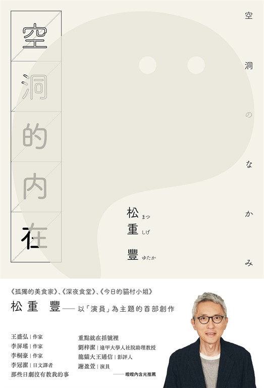 內容簡介 作者 松重豐 說書篇(1:55) https: youtu.be zsy6akwoT1M松重豐 問候篇(0:58) https: youtu.be aRJd6pyK3XA空空的,不代表什麼都沒有 《孤獨的美食家》、《深夜食堂》、《今日的貓村小姐》松重豐以「演員」為主題的首部創作王盛弘│作家李屏瑤│作家李桐豪│作家李冠潔│日文譯者那些日劇沒有教我的事重點就在括號裡劉梓潔│逢甲大學人社院助理教授 龍貓大王通信│影評人謝盈萱│演員——曖曖內含光推薦 12篇二線演員牢騷系連作短篇+25篇工作札記、幕後花絮及日常生活小品「好的刑警、壞的刑警、熱血刑警、老練刑警、溫情派刑警、智慧派刑警、行動派刑警、被打入冷宮的刑警、比流氓更流氓的暴力刑警、只負責在搜查會議上進行報告的刑警、一登場就死的刑警、跟故事沒有太大關係的刑警。以上這些,我全部都演過。」上半部為短篇連作小說〈愚者妄言〉,為松重豐於疫情期間拍攝空檔所作。描寫一名上了年紀又不甚知名的二線演員,一日至京都拍戲,偶遇一名歐吉桑向他開示:「佛陀與演員內在都是中空的」。自此之後,一再接演刑警、黑道、法官、醫師等眾多配角的主人公,不僅在戲內不斷搞混自己所扮演的角色,連在戲外也分不清現實生活與劇中生活的界線。看似通篇抱怨與碎念,轉折處又不禁令人嘴角失守的奇想之作。下半部〈演者戲言〉,集結松重豐連載於《SUNDAY每日》的散文小品。讓喜歡松重豐的讀者,得以一窺他出名以前的生活樣貌,以及大多圍繞著吃食的片場花絮及日常觀察。隨著蜷川幸雄的劇團遠赴海外,卻因爲太想吃壽司而誤入傳教現場;常被人問要吃什麼才能長那麼高,身為演員身高太高反而是一種困擾;私底下用餐,老闆與店員竟退至一旁,默默觀察他是否如同井之頭五郎一般,會將餐點都津津有味地吃完……小說與散文看似各自獨立,卻又巧妙連結,讀來不禁令人嘴角失守,松重豐「掏空才得以成就」的演員之道。國內粉絲推薦──還在配音圈時,恩師曾經告訴我:「要提升演技,就要懂得觀察人。」松重豐筆下細膩而幽微的心境敘述顯示出他之所以能成為這樣的好演員,正是對人心觀察入微。 在囈語與現實間遊走的連作短篇集〈愚者妄言〉,寫出了所有表演人員的夢魘──就算不是表演者,誰又不曾從在台上手足無措的惡夢中醒來?而散文〈演者戲言〉一轉小說的意識流文風,樸實日常的語調就像跟松重大叔坐在桌邊閒話家常。先行連載的散文出現的元素也與後來在疫情期間創作的小說內容巧妙連結。松重豐的身分自然讓本書多了一層玩味,但就算把名字遮起來,說是出自文學界大作家之手也毫不意外的文筆,讀來依然充滿驚喜。 空洞,是為了盛裝些什麼;而曾經盛裝過的事物消失、回歸空洞,是為了容納更多新的事物。以演員的身分盛裝過這麼多的角色,松重豐的空洞,如此豐盛。──李冠潔│日文譯者 長年的配角經歷讓寫作裡的現實諷刺、自嘲顯得充滿智慧且溫柔帶點幽默風趣,人生一場一場的戲,也可以像「孤獨的美食家」這樣,一個人平靜享受美食的時光,沉浸自我,更勝世間一切。《空洞的內在》充滿幻想也令人反思,質樸不華的文字帶有喜感令人會心一笑,像在訴說自己一無所有也是一種價值。為了生活兢兢業業的小人物,何等平凡的煩惱卻又如此與我們的心靠近。這股笨拙直接卻無比感人,庸碌中的掙扎時刻,反而累積出小人物的奇妙高光視角。──那些日劇沒有教我的事 「松重豐」這名字,從字面看來有飽滿厚實之感,與他身形修長外形有點反差。給人幾分靦腆感受的byplayer,文字如人謙虛,真誠的謙虛,自承演員是空洞「容器」,唯有如此,才能將五花八門的角色裝進容器,下戲再將角色取出,以便放進下一個角色。而《空洞的內在》,就是松重豐填實並飽滿內容,由他主演的紙上連續劇。──重點就在括號裡