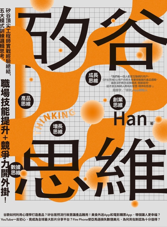 內容簡介 -矽谷頂尖工程師實戰經驗總結,五大模式訓練邏輯思考,職場技能提升+競爭力開外掛!-矽谷居然流行故意讓產品難用?!美食外送App和電影購票App,哪個讓人更幸福?YouTube一反初心,竟成為全球最大影片分享平台?Fire Phone使亞馬遜損失數億美元,為何貝佐斯認為十分值得? 「我們每一個人都是互聯網的用戶。 《矽谷思維》以用戶的眼光來審視複雜的產品邏輯, 讓高深的概念返樸歸真、簡顯易明, 這才是互聯網人應有的智慧、精神和態度。」——羅振宇/「得到」App創始人 互聯網行業競爭激烈,重視盈利模式的科學性與可行性, 永遠都那麼多采多姿、煙硝瀰漫, 不管是蓬勃發展的順風期,還是調整重組的逆風期, 總有很多可愛的人物與有趣的案例讓人津津樂道。 作者Han從矽谷一流企業的實習生做起, 後來成為獨當一面的頂尖軟體工程師。 多年的實戰經驗讓他領悟—— 互聯網企業面對的市場挑戰,任何其他類型的企業都要面對; 互聯網從業者所需的涵養素質,任何其他類型的職位都要具備。 然而,有很多知識,在互聯網行業非常重要,但在學校從來不教。 《矽谷思維》從五個思維模式介紹矽谷的領先祕訣, 拆解網路科技企業產品與營運, 用平易近人的筆觸描繪矽谷的成功地圖, 用豐富有趣的案例講解內涵深奧的概念方法。 ▴產品思維:從人的本質心態出發,打造方向正確的產品 ▴數據思維:正確地對待數據資源,從而利用數據帶出產品的優化 ▴創業思維:理解矽谷創業氛圍,在失敗、週期、目標等概念中找到感覺 ▴增長思維:突破界限、解放頭腦,用更博大的胸懷迎接明天 ▴成長思維:自我激勵、完美溝通、提升效率、合理休息,為成長蓄力 網路時代,不論你從事哪一行、位於哪個職場位置, 充足的知識儲備和溝通技巧已是入門基礎, 更高的格局和眼光,才是進階的必要條件。 幸好,格局和眼光是可以培養的。 本書用一種對待用戶的心態對待每一位讀者, 深入淺出理解互聯網邏輯背後的內容, 不僅是科技產業人士可以借鑑的思路, 也為各行各業的你我,提供源源不絕的營養和動力!本書特色 1. 從普羅大眾的角度做切入點,用平易近人的語言來闡述一個個產品(包括Google地圖、Uber叫車程式、Windows作業系統、Instagram社交軟體⋯⋯),以心理學、邏輯觀念、經濟學、統計學等學科輔助剖析產品背後的設計邏輯,字裡行間盡顯人文情懷。 2. 作者用說故事的方式讓讀者找到科學分析的感覺,除了滿足一般人對軟體工程師工作內容的想像與好奇,更能一窺尖端網路企業在研發、測試、生產、設計、行銷、服務、營運層面所面臨的酸甜苦辣,讀來欲罷不能。 3. 作者在訓練讀者邏輯方法和介紹矽谷祕辛的同時,也用親身經驗為例,為想開啟職業生涯的新人提供美國頂尖網路科技公司的面試技巧,對於懷著互聯網夢想的人多所助益! 4. 對科技產業感興趣的所有人、想踏入科技產業的新人、從事科技產業的產品經理、專案經理、網頁設計師、軟體工程師等在職人士,都能在這本書裡找到答案。專業推薦(依姓氏筆劃排序) 半路出家軟體工程師在矽谷 矽谷阿雅/矽谷創業家、前臉書產品經理 陶韻智/XRSPACE 總經理、德豐管理顧問公司合夥人 程世嘉/iKala 共同創辦人暨執行長 愛瑞克/知識交流平台TMBA共同創辦人海外好評推薦(依姓氏筆劃排序) 「在我們的時代,技術日新月異。每十年的矽谷,就是一個不同的矽谷。 Han從現在『互聯網時代』的矽谷一線,帶來了《矽谷思維》,提供了一個窗口,讓我們看到一個技術人在一個矽谷代表性公司的思維模式和技能日常。在此力荐。」——范承工/美國MemVerge創始人及CEO、VMware前高級副總裁、獵豹移動前CTO 「我發現矽谷優秀的創業者,都有著Han在書中總結的幾種思維模式:無論是通過『用戶思維』找到行業痛點,還是通過『增長思維』取得業務騰飛。在此力荐。」 —— 郭威/矽谷投資人 「Han在書裡拆解了很多矽谷名企的經典案例,深入淺出地揭示了經濟學、統計學等概念如何在互聯網行業中被重新應用。他以幽默風趣的文筆為我們詳述了矽谷人的五種思維模式,非常適合各行業的創新創業者閱讀參考。 」 —— 梁芊芊/CFA、Newgen Venture Partners 新進創投矽谷合夥人 「Han的這本書用很生動的方式,把矽谷檯面上的、茶餘飯後的、內行人才知道的矽谷職場技能所需都講得清清楚楚。我希望當年懵懂來矽谷的我,要是早看這本書就好了!特此力荐。 」——曲曉音/ Facebook、Instagram前資深產品經理,《矽谷產品:36講直通產品經理》作者 「這本書的內容和它的名字一樣,既有高大上的思想,又有接地氣的案例與文筆,讀之如沐春風,欲罷不能。很開心有這樣有深度的作者,能夠執筆為互聯網的青年才俊們指點迷津,為大家獻上一堂又一堂別開生面的思維課。」—— WingST/騰訊高級設計師,《交互思維:詳解交互設計師技能樹》作者 「矽谷是世界創新之地,而我認為創新的核心,並不是技術,而在於思維;推薦Han的這本《矽谷思維》,希望大家在這本書裡,真正學到創新思維,學習對於思考的思考,實現人生的躍遷。」 ——Spenser/個人成長類知名公號Spenser創始人,暢銷書作者 「Han在本書中,深入淺出地分析了來自矽谷的職業核心思維,值得每一個互聯網從業者,尤其是營運、行銷類職位的同學們認真瞭解。 」——黃有璨/三節課聯合創始人,《運營之光:我的互聯網運