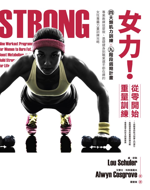 內容簡介 專業教練這麼做、基礎健身到職業選手都在練的女性專屬力量訓練攻略 0經驗者的肌力訓練入門導引 X 進階健身者的重量訓練攻略 X 專業選手的自主訓練寶典 亞馬遜★★★★★滿分好評!超越年齡與體質,從家裡到健身房都實用的9 階段身體改造計畫女力=重量訓練+熱愛生活+挑戰極限不做女神、不是芭比娃娃,女人要的是真正的強壯和力量!美國重量級專業健身教練盧.舒勒+艾爾文.科斯葛羅夫從女性角度出發,超過四十年的專業經驗+運動科學研究論文實證,聯手打造所有年齡與體質的女性都適用的重量訓練攻略,讓力量與身體對話,找回自信、改變生活,重新塑造健康、緊實、性感的自己,並為妳破解各種譁眾取寵的運動與健康迷思,從此開始真正的健身生活!★ 最完整!最有效!4大類肌力訓練X9 階段全身訓練計畫X30堂女力養成訓練-推、拉、硬舉、深蹲4大基礎動作項目X 9階段漸進式訓練強度與多元課表內容,針對減重、減脂、提升肌力、提升運動耐力四種健身目標,教妳安排最有效的訓練計劃。-依據功能性訓練原則設計的30堂複合動作訓練課表,包含熱身、核心肌群、肌耐力、高強度間歇運動,可自由調整動作難度與運動強度,完整訓練全身肌群。★ 從基礎到專業,207 張動作圖與詳細步驟解說-20種暖身、伸展、放鬆動作圖解,72種肌力訓練、核心訓練、高強度間歇訓練動作指導,按摩滾筒、壺鈴、啞鈴、槓鈴、TRX、腹輪、滑輪器材、懸吊器材、彈力帶……的使用方法。-羅馬尼亞式硬舉、相撲式硬舉、腹輪前推、側棒式划船、懸吊式伏地挺身……妳知道這些訓練的正確姿勢與步驟、用力方式嗎?訓練時如何調整強度?避免受傷的關鍵在哪?現在開始不只要練到,還要練對、練好!★ 立即破除教練沒說的健身迷思 「少吃多動」竟然大錯特錯!進步的關鍵是重量不是次數,做重訓不會變成金剛芭比,脂肪不會變成肌肉,只做有氧運動不會瘦,原來局部減脂根本不可能,跑步、自行車、舉重哪種最好?在生病或受傷的時候應該繼續訓練嗎?同時進行肌力與耐力訓練反而會降低成效……★ 科學飲食營養指導方針量身制定飲食策略,準確攝取蛋白質、水分、碳水化合物、纖維質、油脂五大類食物,不再擔心脂肪累積、瘦到肌肉,輕鬆吃出精實線條與滿滿活力。★ 專業教練、奧運選手、運動達人一致推薦!Stay fit with me 知名健身部落客 山姆伯伯 專業運動訓練平台山姆伯伯工作坊甘思元 力格運動健護中心創辦人 健力女子的日常 知名健身部落客 健身狂 Sally Chen 知名健身部落客 健身教練Annie ACED Fitness UK 執行長 教育總監 健美女大生 資深教練 健身部落格作者 郭婞淳 奧運銅牌舉重選手 *從事健身教學多年,最常聽到的不外乎就是不少女性學生跟我說:「我想瘦身,但是不想變金剛芭比。」,或是「我自己在家做了一個星期的深蹲,可是覺得自己的大腿變粗了!」由此可見,不少女性雖然知道重量訓練或阻力訓練對身體有好處,但是卻對「爲什麼要做重量訓練?」、「重量訓練的正確觀念有哪些?」及「如何透過正確有效的訓練來達到目標?」、「飲食與重量訓練的關係有多密切?」有著許多的迷思及誤解。《女力!從零開始重量訓練》這本書透過運動科學的角度來解開大家對重量訓練的迷思,由女性生理學的角度來設計九階段的身體改造計畫,幫助女人做一個了解自己身體、懂得訓練自己的人,才能真正控制自己的人生!--ACED Fitness UK 執行長 教育總監 健身教練Annie*「舉得像男人一樣重,但看起來像個女神」── 對我來說,真正性感的女人,是自信、愛自己、有力量的。透過閱讀這本書,跟著作者一路破解運動迷思、建立正確觀念、實踐訓練計畫,一步一步踏入設計與架構都相當完整的女性健身世界,所有女性健身容易遇到的問題,幾乎都能在此書中找到答案。市面上瘦身健身的書籍雖然不少,但是觀念正確、針對女性健身的可靠書籍並不多,這本書不僅能幫助初學者釐清一些關於肌力訓練的迷思與重點指引,更棒的是作者非常用心的一步一步教我們如何為自己安排課表,並且詳細說明其背後的知識與觀念。非常推薦這本翻得清楚易懂的健身工具書給每一位想要變得更有力量的女孩們;這本書再度強調了一個觀念:健身是一種生活態度,而不是減肥的過程。--知名健身部落客 Stay Fit With Mi*這本書涵蓋很多大家都想知道的資訊,不管是對初入門的新手或開始訓練一段時間的人來說,都很實用。除了強調肌力訓練的重要性外,也提到現今審美價值觀的問題,不像坊間運動書標題都是大大的「白瘦美」、或強調「三分鐘能瘦一生」等讓民眾有錯誤期待、越走越偏的觀念。「變得更強壯」是很多台灣女生都會害怕聽到的字眼,本書透過分析肌力跟健康的關聯性來打破這樣的刻板印象,也鼓勵女生透過重訓,讓自己更有自信。--知名健身部落格 健力女子的日常 *這不只是一本女性剛接觸重量訓練時要看的書,也適合初學健身者對於重量訓練迷惘的朋友,這不是一本會讓你覺得難上手又昏昏欲睡的教科書,是許多從生活中的小故事,讓大家認識肌肉跟力量對女性的重要性的必要。這本書淺顯易懂的內容,讓我知道如何更貼近人心的去分享重量訓練對女性的好處。有力量的女性並不代表她們很男性化,她們強壯有力的外表下,擁有著健康的身體,健康的身體磨練了她們的心智,更提高了生活品質。