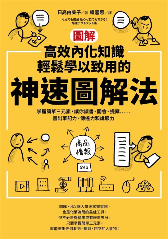 商品描述 | 高效內化知識、輕鬆學以致用的神速圖解法 (電子書):圖解,可以讓人快速掌握重點,也是化繁為簡的最佳工具,但不必畫得精美或有繪畫天分,只要掌握簡單三元素,就能畫出任 |