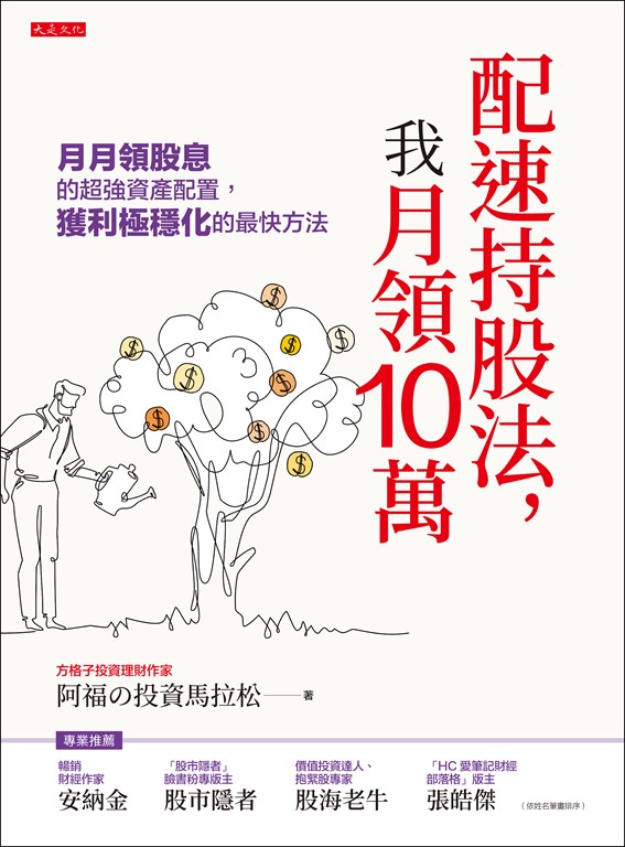 作者介紹 阿福の投資馬拉松(詹英哲)曾任職IBM專案經理,對員工健康檢查報告上的紅字逐年增加有所警覺,開始跑馬拉松健身。43歲時開始有中年危機,而投入價值投資和被動投資,並將跑馬拉松的心法應用於投資,形成自己的「配速持股」投資哲學。2020年時股票收入已經大於日常支出,5年即達成「財務自由」,於是提早退休,開啟退休後的第三人生。【阿福の投資馬拉松】臉書粉絲專頁:https: www.facebook.com investor.marathon【阿福の投資馬拉松】方格子出版專題:https: vocus.cc investmarathon introduce