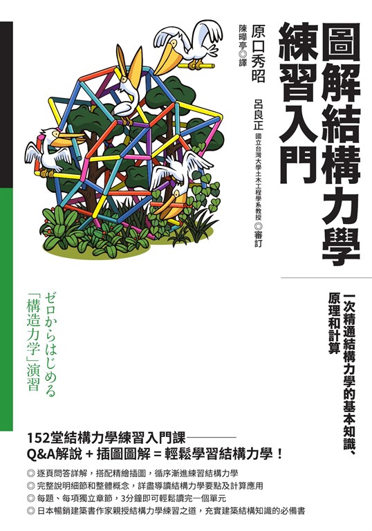 內容簡介 ――――――圖解化無壓力輕鬆練習結構力學―――――― RC造、S造、建築室內裝修設計、建築施工、建築結構、建築計畫, 完整掌握結構力學原理和計算應用 國立台灣大學土木工程學系教授 呂良正◎審訂 152堂結構力學練習入門課―――― Q&A解說 + 插圖圖解 = 輕鬆學習結構力學! ◎逐頁問答詳解,搭配精繪插圖,循序漸進練習結構力學 ◎完整說明細節和整體概念,詳盡導讀結構力學要點及計算應用 ◎每題、每項獨立章節,3分鐘即可輕鬆讀完一個單元 ◎日本暢銷建築書作家親授結構力學練習之道,充實建築結構知識的必備書 最有趣的結構力學練習入門書―――― 建築知識的學習起點,一次弄懂結構力學的門道! 一座橋為什麼會塌、一棟建物為什麼會倒?怎樣才能蓋出穩固的結構?結構力學經常讓建築學習者和愛好者得奮力搔首理解,土木考試者更是頭痛憂慮,這門絕對重要的學問閃不掉、避不了,那麼讓我們試著了解它吧! 這本結構力學入門書以圖解的方式詳盡解說結構力學的關鍵觀念,包括力矩、桁架、內力、應力、力與變形、撓度與撓角、基本週期、挫屈、塑性彎矩、破壞荷重、判別式等等,清晰列舉各項重要公式,一目了然,方便記憶。 全書152個單元,精心收錄的各類反覆強化練習,讓學習者牢牢記住經典問題,從零開始攻克結構力學的難題。關於練習問題的解法說明,以簡潔的圖示呈現理論內容。藉由大量的圖解,幫助讀者輕鬆弄懂結構力學。 對於想了解結構力學基本知識或實際計算應用的人,本書都提供了讓人樂在其中的輕鬆學習方式! 結構力學練習21大章節超級學習術―――― 入門前的入門書,基礎前的基礎學! 1. 力矩 2. 支承反力 3. 桁架 4. 簡支梁的內力 5. 懸臂梁的內力 6. 靜定構架的內力 7. 靜不定構架的內力 8. 力與變形 9. 斷面 10. 應力 11. 撓度與撓角 12. 以撓度與撓角解靜不定結構物 13. 以變位解柱的外力 14. 基本週期 15. 挫屈 16. 塑性彎矩 17. 破壞荷重 18. 判別式 19. 傾角變位法 20. 彎矩分配法 21. 公式集