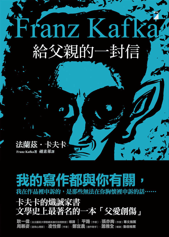 內容簡介 ★內容簡介「我的寫作都與你有關,我在作品裡申訴的,是那些無法在你胸懷裡申訴的話……」─── 卡夫卡的熾誠家書 ───文學史上最著名的一本「父愛創傷」 你是我衡量所有事物的尺度。你沒有覆蓋到或者你無法覆蓋的領域,才可能是我的生活。而根據與你高大身軀一致的想像,這樣的領域寥寥無幾…… ▍「親愛的父親,最近你問我,我為何聲稱對你感到恐懼……」▍現代主義文學大師寫給巨人父親的控訴與傾吐卡夫卡的文學作品充滿壓抑、疏離與絕望,始終在與權威、自我拉扯,他的寫作動機乃至人格養成,都和其父赫爾曼有關。卡夫卡在他離世前五年,寫了一封長達103頁的信給父親,道盡對父親既崇仰又恐懼,急於逃離又交織著歉疚的矛盾情感。信中細述宛如巨人強大的父親對其施加的壓力,如何使他喪失全部的自信心──他渴望肯定,而父親給他的更多是言語上的羞辱與暴力;他亟欲獨立自主,結局卻是終生恐婚,難逃父親龐大的身影。這封信最終被母親退還回來,未成功交到父親手上,但仍被留存下來。它是後世讀者親近卡夫卡、認識其寫作起源的一把鑰匙,也是一個始終追尋父愛、飽受童年創傷的男孩,對父親沉重而赤裸的控訴與傾吐。 你幾乎沒有真正打過我,可是你的咆哮,你漲紅的臉,你急匆匆解下的褲子吊帶,它垂掛在椅背上隨時待用的狀態,對我來說更為糟糕。就像一個人即將被絞死那樣。如果他真被吊起來,他就死了,一切就結束了。而如果他必須目睹整個準備絞刑的過程,一直到絞繩已垂在面前了,才得知自己已被赦免,那麼,他可能會為此痛苦一生。 ★特別收錄:卡夫卡不同時期之肖像及其家族成員照片。★名人推薦● 耿一偉(台北藝術大學戲劇系兼任助理教授)專文導讀:「《給父親的一封信》不是文學作品,是卡夫卡對原生家庭的控訴。或許自覺與卡夫卡有類似經歷的讀者,能在卡夫卡的信中找到認同,因為他說過:『只是為了那些絕望者,希望才被賜予我們。』」● 平路(作家)專文推薦:「我始終記得第一次讀到這本書的震撼。閱讀時我很年輕,想著到底是怎麼樣的情境,一句接一句,卡夫卡寫下如許絕望的句子?……翻開卡夫卡,段落間如果您不覺歎口氣,某些字句刺到了痛點?甚或悄悄流下淚水?那麼,經歷的或許是另一個意義的『成人禮』。回顧困擾您的父子關係,您內心將會出現通透而舒暢之感。」● 張亦絢(作家)專文推薦:「卡夫卡對父親『既糾纏又挑戰』,對現在的讀者來說,應該是『太可疑的暗黑療癒』。然而,不同於現今的『乾淨俐落』,卡夫卡『並不直接來個過肩摔』──如何解釋?我不傾向套用『他優柔寡斷』這種浮泛說詞。我以為,卡夫卡是視他的創造者與虐待者為『自己的一部分』。因著大大忠於自我,無論多痛苦或多見笑,他都不以失憶與拒認為手段──這也是『寫信給父親』,但『非常反家書』的這封『陳情表』,值得我們思索的方向。」● 周慕姿(諮商心理師)、凌性傑(作家)、鄭宜農(創作歌手)、蕭雅全(導演)|動容推薦