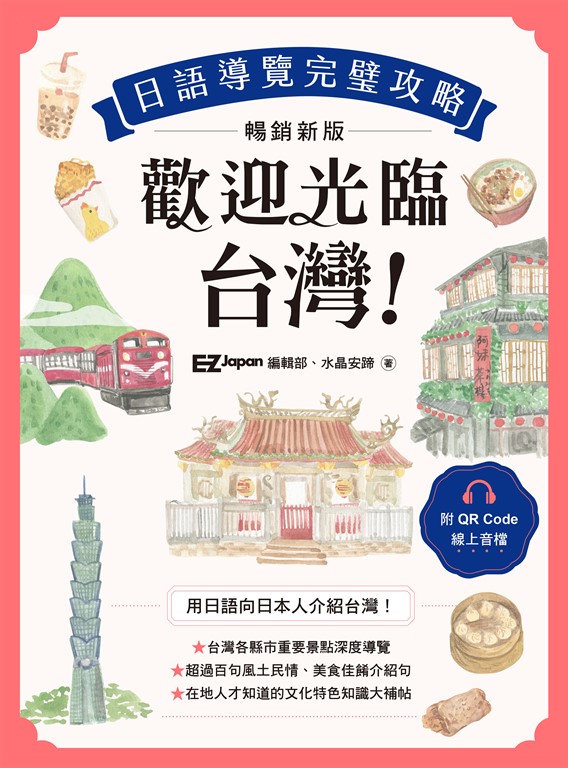 內容簡介 暢銷日語學習書增訂再升級!日本朋友來到台灣,正是最佳交流時機一本全台深度導覽,帶你輕鬆開口說台灣!EZ Japan編輯部誠心推薦給→需要接待日本友人、日本觀光客的你→想知道怎麼用日語介紹台灣的你→正在準備日語導遊人員口試的你【本書特色】特色一、全新改版再升級!北、中、南、東、離島與美食,最完整台灣深度導覽本書從舊版《歡迎光臨,台灣!》(2015)中修改增訂,補齊全台灣所有縣市內容,進行深度導覽。從歷史、地理、人文發展、遊玩看點等全方位解說,加上可隨時聆聽的全書線上音檔輔助學習,讓你走到哪就聊到哪。書中也介紹超過五十種特色美食、小吃,讓你不只用日語學習台灣知識,更能當個稱職領隊,與日本人交流順利無阻。特色二、百句口說好用句,增進臨場反應力本書精心規劃涵蓋地方特色、美食、文化、景點與看點的學習內容,並針對這些內容提供超過百句的「各地特色好用句」,大量補充從本文延伸的當地新知識。好用句讓你能輕鬆記憶,大幅增加學習效率,也能在各種場合實際應用,訓練遇到日本人時的臨場反應力。特色三、在地人才懂!知識補帖、問答,深入瞭解台灣日常「台灣人中秋節為什麼要烤肉?」、「台灣的馬路上怎麼都是機車?」新版新增大量「台灣文化補充」內容,從傳統的端午划龍舟、媽祖遶境,到現代的手搖杯、捷運等等,不只介紹縣市景點,更能深入台灣日常。書中也安排Q&A式快問快答極短文,認識台灣早餐、國家公園、賞花景點,快速解答日本人的疑問,講出最道地的台灣豆知識就靠這一本!【推薦人】(皆依姓名筆畫順序排列)《奔三野郎》Podcast 主持人|Dennis&Green「字彙的豐富」會提升「傳遞情報時的效率」,精準的介紹能讓聽者瞬間明白。書中把台灣的日常,用精準的日文進行全面介紹。透過這本書不管目的是用日文介紹或自身再度認識台灣,都會獲益良多。在此誠摯地推薦給大家。音樂影像創作人|黃小玫每當我在創作日文觀光歌曲時,第一步一定會先翻閱有關台灣旅遊的日語文章或書籍。當我們用日文的視角再一次認識台灣,會發現有些我們認為再日常不過的事,對日本遊客來說卻是很有趣、很想多了解的文化。如果你跟我一樣,想盡一份力讓更多日本友人認識台灣,這本書具備了所有關鍵要素,幫助你加速成為一名令人印象深刻的導覽員!知名日文教師、口譯員|Hiroshi資深媒體人 作家|野島剛旅遊節目製作人兼主持人|廖科溢