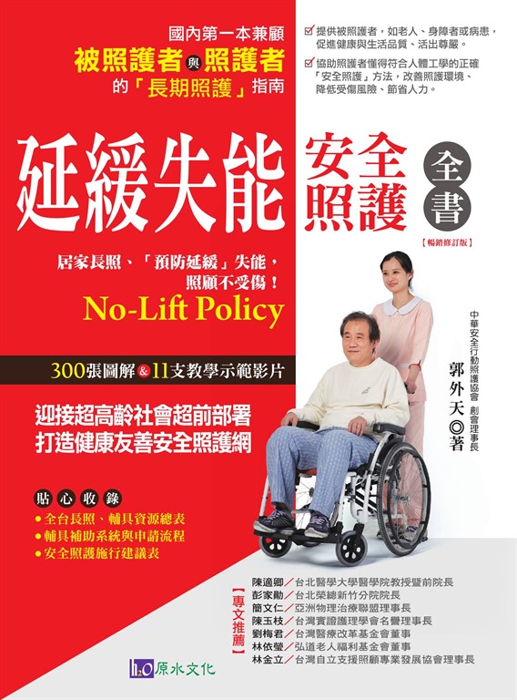 內容簡介 迎接高齡老化社會,打造健康友善照護 ★★台灣各大長照機構、醫療院所全面積極推動「安全照護」零抬舉照顧政策(No-Lift Policy) ★★國內第一本兼顧被照顧者與照護者的「長期照護」指南 2021年最新收錄安全照護資訊 ˙預防及延緩失能最佳照護策略「自立支援照顧」 ˙機構評鑑加分最佳策略「No-Lift Policy」安全轉移位施行步驟 ˙長照2.0,政府4項新制補助「長照4包錢」您家如何聰明用? ˙ 老後安居,認識「通用設計」與「無障礙空間」 本書收錄300張安全照護技巧圖解&提供11支居家照護影音教學示範,配合書本文字、搭配手機立刻直接觀看。 台灣在1993年進入高齡化國家,預估在2018進入高齡社會、2025年進入超高齡社會(老人超過20%)、2060年老人高達39%,也就是每2.5人就有一個是老人。 在台灣,家庭照顧者以女性居多,約占七成。又,年齡介於51~60 歲的高齡家庭照顧者人數與比例最高佔32.9%。平均照顧時間9.9年,每天平均照顧長達13.6小時。在家庭照顧者的6大壓力與負擔中(身體,心理,工作,社交,經濟,家庭關係)以身體病痛和照顧傷害最為困擾。 根據統計:居家照顧者因徒手搬運被照顧者而讓身體感到不適佔了87%,曾經因此而受傷佔了82%,之後需復健治療佔了23% (其中又以腰部受傷情況最為頻繁)再則,家庭在面臨照顧問題有不同的發展歷程與需求,例如家人倒下的初期「新手照顧者」最大問題是尋找長照資源、照顧知識與技巧不足。 其次,很多照護機構不管是出於用人成本的考慮,還是專業培訓管道受限的問題,亦或是專業背景人員稀缺等因素所致,在運營當中都出現了很多風險管理方面的問題,例如:忽視安全意識,出現徒手搬移重物的風險疏失等;尤其在搬移照護的過程中,導致老人與照護工作者直接或是間接身體受到傷害等管理風險,深究其原因之後,我們可以發現問題還是出現在對「安全照護」的理解不足。 這本是「中華安全行動照護協會」創會理事長規劃的書籍,全書強調安全照護重要性和具體做法,是兼顧理論和實際的長期照顧指南。被照顧者可以得到更好的照顧品質,照顧者可以省時省力和降低受傷風險。本書圖文並茂,讓你快速了解長照和輔具實際運用面,推薦給提早替未來做準備的壯年、有長期照護需求的家庭和醫療、護理、復健、社工、保險相關從業人員。 零抬舉策略NO-LIFT POLICY意指「不徒手搬運病患規範」,是一套符合人體工學的安全照護政策與方法,有些先進國家甚至立法強制執行。另外從研究報告來看,即使徒手搬運照護訓練或雙人操作也無法降低照護人員受傷率。對照護人員來說徒手搬運造成的肌肉骨骼傷害是最大的職業傷害,對被照顧者而言徒手搬運造成恐懼、緊張、不適、自尊受損,甚至受到二次傷害。 轉移位零受傷七要訣: 1.想:想好規劃。評估被照顧者身體機能,選擇正確移位方式並規劃動線。 2.幫:請被照顧者幫忙:誘使被照顧者幫忙出力,將復健結合於日常生活中。若被照顧者超過照顧者1 3體重,就需要請他人協助。 3.輔:善用輔具,同時搭配無障礙空間和通用設計規劃 4.近:讓被照顧者盡量靠近照顧者,兩人距離越近越省力 5.動:跨大雙腳間距,如馬步、弓箭步。跨步方向要與轉位移動方向配合。 6.姿:姿勢正確如腰背挺直、雙手相扣 7.體:善用體重協助推、壓等動作 本書從照護最常見的情境分析,以故事及實例介紹「安全照護」與實際的執行方針。主要目標讀者群為讓專業從業人員 (如治療師、護理師、照顧服務員等)、相關科系學生、與對照護有興趣、或有隱型需求的一般大眾,以及家有高齡、失能及身障者。不僅幫助專業人員迅速認識此國際盛行的照護方法,即使是不用自己照顧的一般民眾或病患家屬,也可以知道哪些眉角才是「安全照護」。 【專文推薦】 陳適卿\台北醫學大學醫學院教授暨前院長 彭家勛\台北榮總新竹分院院長 簡文仁\亞洲物理治療聯盟理事長 陳玉枝\台灣實證護理學會名譽理事長 劉梅君\台灣醫療改革基金會董事 林依瑩\弘道老人福利基金會董事 林金立\台灣自立支援照顧專業發展協會理事長 【強力推薦】 李淑貞\國立陽明大學ICF暨輔助科技研究中心主任 毛慧芬\台灣大學職能治療系助理教授 徐業良\元智大學老人福祉科技研究中心主任 陳景寧\中華民國家庭照顧者關懷總會秘書長