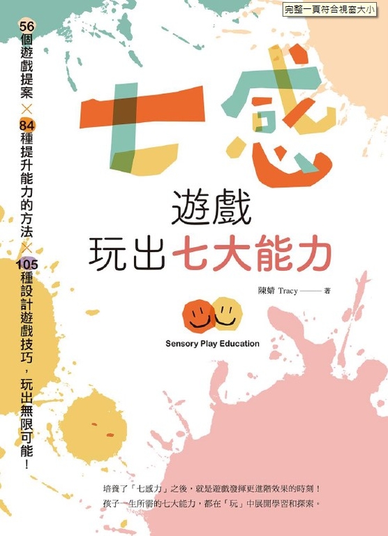 內容簡介 暢銷書《七感遊戲教養》升級進階版!跟著Tracy老師~從「七感力」玩出一生所需的「七大能力」激發孩子多元潛能,為未來打下穩固的學習基礎!0~6歲是促進孩子感覺統合與認知發展的黃金期,而「遊戲」是開發孩子潛能的第一把鑰匙,孩子一生所需的能力,都在「玩」中展開學習和探索。◆奠定「七感力」,進階玩出「七大能力」在《七感遊戲教養》中,Tracy老師深度探討「七感」,即視覺、聽覺、嗅覺、味覺、觸覺、本體覺及前庭覺的重要性,並透過數十個七感遊戲,幫助孩子各項感官發展得更完整。當孩子體驗過這些精心設計的遊戲、也培養了「七感力」之後,就是遊戲發揮更進階效果的時刻!本書延續七感遊戲的創新精神,Tracy老師這一次要透過「玩遊戲」來幫助孩子培養「七大能力」:創造力、專注力、語言力、數學力、社交力、情商力、運動力,用心設計了56個簡單、好玩又多功能的遊戲;另收錄84種提升七大能力的方法,以及105種延伸設計遊戲的技巧,教孩子們如何玩、在哪裡玩、玩些什麼……既有挑戰性且趣味性十足,還可為未來的學習建立穩固基礎。◆延伸七感遊戲的廣度和深度,56個遊戲啟發孩子更大潛力孩子是天生的「玩」家!在遊戲的過程中,我們可以看到孩子進入高層次思考,專注的同時,也在動動大腦,想著該如何解決眼前的問題?手指要施出多少力?上下左右如何移動才能達到目標?該怎麼表達,才能讓同伴了解,一起完成任務?一個一個看似不起眼的遊戲,讓孩子從頭到腳全身動了起來;在玩耍的同時,加強腦力、肌肉發展和手眼協調能力,是孩子日後學習寫字、算數、畫符號的重要關鍵,過程中也累積了專注學習、溝通表達、互助合作和情緒調節等各項能力。★培養「創造力」:拿皺紋紙和蠟筆來創作吧,讓孩子見識水蠟不相容的特性,玩出大驚喜!畫畫只能用顏料或畫筆嗎?用麵粉也可以喔!搭配蘇打粉和鹽來作畫,送入微波爐,只要幾十秒,令人大開眼界的「胖胖麵粉畫」就完成了。★培養「專注力」:給孩子一支夾子或鑷子,找些豆子、毛絨球或小石頭,練習夾起並移動,耐力、專注力和抓握力同步提升!拿一支小小的羽毛,讓孩子玩穿洞洞遊戲,既訓練了專注力,還加強手眼協調能力。★培養「語言力」:將數字、ㄅㄆㄇ、ABC字母黏在蒼蠅圖案上,護貝後,加上一支蒼蠅拍,就可以玩打蒼蠅遊戲,幫助孩子加強手眼協調能力,又可訓練聽覺敏銳度、視覺記憶力和追蹤能力。★培養「數學力」:生活中各種素材:鈕扣、竹籤、硬幣、貝殼、石頭、樹枝,都可以讓孩子玩堆疊、排列的遊戲,認識形狀和線條,輕鬆學習建構、序列概念,提升邏輯思考力。★培養「社交力」:挑選一本喜歡的童書,化身為書中人物進行對話;或選定書中的人物角色來作畫,一起演出生動趣味的小木偶劇場,社交力、語言力、創造力同步發揮!★培養「情商力」:將碎紙、鈕扣、鈴鐺、石子、米粒、棉花等塞進氣球裡,簡簡單單就做成一顆「情緒舒緩球」,孩子在捏玩、抓握的同時,不僅情緒得到舒緩、放鬆,還能發揮專注力和想像力。★培養「運動力」:給孩子一張氣泡紙,沾上顏料後踩在大海報上,跑跑又跳跳,就完成一幅大大的腳丫畫,充分運用著前庭覺和本體覺,全身上下動起來,肢體和心靈都得到舒展!◆隨時迸發「玩」的靈感,每個孩子和父母都是遊戲專家!Tracy老師精心設計的遊戲,是一顆顆延伸創意的種子,而身邊隨手可得的材料:吸管、貼紙、彈珠、樹葉、羽毛、麵粉、冰塊、木頭、泥巴……提供孩子們「玩」的靈感,許多意想不到的點子就在玩耍時迸發。本書邀請孩子和爸媽一起成為遊戲專家,只要在生活中花點心思,就能輕鬆變化出好玩又具啟發性的遊戲,讓孩子在快樂玩耍之餘,也能提升各項能力。◆把握○~六歲黃金成長期,在遊戲中玩耍也學習天生愛遊戲的孩子,利用與生俱來的七個感官來探索世界,並藉由各種遊戲達到不同的感官刺激,以迎接日後的種種挑戰。只要好好把握孩子0~6歲的黃金成長期,仔細觀察孩子各項感官能力的發展狀況,並融入適當的遊戲,就有機會幫助孩子在各方面奠定穩固的基礎,既提升七感力,也發展一生所需的七大能力,真正落實在遊戲中玩耍也學習。 〔本書特色〕★重點回顧「七感」摘要:帶你認識「七感」的重要性、明白感官失調對孩子的困擾及挑戰等,一書在手,快速掌握重點!★完整解說「七大能力」:說明「七大能力」對兒童發展的意義,讓父母明瞭孩子某項能力不足的原因、可能會產生的狀況,並積極運用Tracy老師提供的方法及訓練孩子的遊戲建議,幫助孩子提升所欠缺的能力。★詳細實用的圖表:包含孩子語言發展、數學技能發展、社交力發展里程,以圖表完整呈現,一目了然。另有七大能力分析圖及七感遊戲分布圖,方便清晰對照,掌握孩子各階段的能力。★清楚標示遊戲資訊:包含建議年齡、準備時間、遊戲價值、問孩子的啟發性問題、延伸遊戲……等,方便父母、師長針對孩子個別需求選擇適合的遊戲,也可同步了解每項遊戲的助益和影響。──各界盛情推薦──Grace Fisher/國際幼兒園學前教育部主任.蒙特梭利教學法資深老師❙Katie Miller/香港國際學校小學部主任.國際文憑小學項目IBPYP資深導師❙Poly Ng/香港演藝學院作曲系導師.音樂兒童基金會課程顧問❙Tracey Emms/國際連鎖幼兒園校長❙少爺占/香港資深唱片騎師.歌手.多媒體音