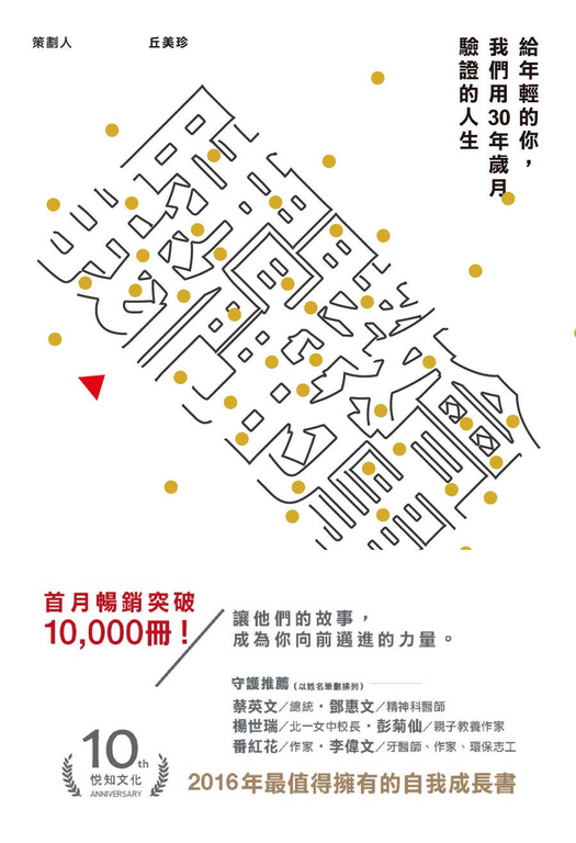 內容簡介 讓他們的故事,成為你向前邁進的力量。首月暢銷突破10,000冊!2016年最值得擁有的自我成長書 歲月是神偷,長大後的我們是否還記得當初狂妄的誓言? 不懂當下的選擇,對未來將是深具意義的守候, 如果能回到16歲,你會如何對自己介紹這個世界? 以時空膠囊的概念,書中每篇文章的啟始都源自於正值青春期的孩子對生命的疑問,再由99位自高中畢業已屆30年的大人們,以他們真切的人生故事,將自己的感悟與歷程化作文字。當中有得失與取捨、工作的意義、無限的夢想、面對挫折的勇氣,以及如何成為支持他人的無私力量。 期許正站在人生旅程起點的你,不論未來如何讓人不知所措,都不要遺失了造夢與感動的能力。名人推薦 【具名推薦】(以姓名筆劃排列) 鄧惠文 精神科醫師 番紅花 作家 【守護推薦】 好奇、勇敢、有想像力、有叛逆心,為自己的人生負責任!───蔡英文 總統 人生就是邁向自我實踐的歷程,帶著愛與勇氣去嘗試吧!───楊世瑞 北一女中校長 邀請您進入這一頁頁以漫長歲月換來的智慧精華,提前預習百態人生!───彭菊仙 親子教養作家 雖然說生命的體會很難言傳,但是若能靜下心閱讀此書,這些動人的故事,會是改變我們生命的契機。───李偉文 牙醫師.作家.環保志工