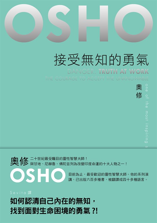 內容簡介 如何認清自己內在的無知,找到面對生命困境的勇氣?!奧修OSHO的地位:‧二十世紀最受矚目的靈性智慧大師‧與甘地、尼赫魯、佛陀並列為改變印度命運的十大人物之一‧目前為止,最受歡迎的靈性智慧大師。他的系列演講,已出版六百多種書,被翻譯成四十多種語言,影響數以億計的人類心靈。奧修給我們的忠告:只有當你開始覺知到某件事情時,你才能夠有所行動來改變它如果你壓抑性,它會變成野心所有的放棄都會在你的內在創造出精神分裂任何一個對權力感興趣的人都飽受自卑情結的折磨為什麼我們總是無法快樂的生活?你所知道的知識,真的是屬於你自己的嗎?《接受無知的勇氣》是奧修為現代人們指出一條能夠更加勇敢面對自己、走出內在困境的珍貴指引。透過門徒的一個個問題,奧修告訴我們一直嚮往但卻困擾的核心問題──為什麼我們不能只是快樂地生活和工作?為什麼我們似乎擁有可以解決所有問題的知識,但我們仍然有許多的問題無法被解決?他再次提醒我們應該把握當下的快樂,不要一直延遲等待;他告訴我們面對困境如何轉變內在思維,而不是冒然放棄;他指引我們如何從內在探索,找到生存的勇氣……奧修說:接受你自己的單獨,接受你自己的無知,接受你自己的責任。只有你自己經驗到的才是你的。成為無知的,從這裡,你可以開始尋找真實的自己,超越生活的困境,找到喜樂美好的人生。
