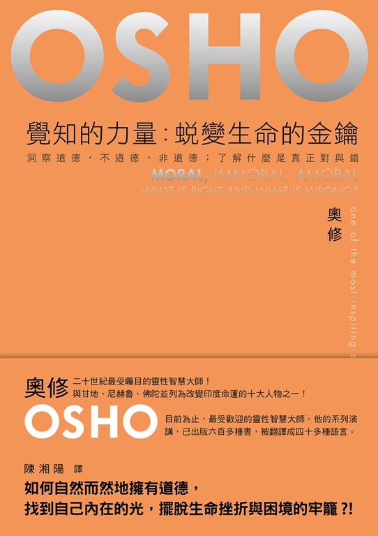 內容簡介 如何自然而然地擁有道德,找到自己內在的光,擺脫生命挫折與困境的牢籠?!◎奧修OSHO:‧二十世紀最受矚目的靈性智慧大師‧與甘地、尼赫魯、佛陀並列為改變印度命運的十大人物之一‧目前為止,最受歡迎的靈性智慧大師。他的系列演講,已出版六百多種書,被翻譯成四十多種語言,影響數以億計的人類心靈。●奧修給我們的忠告真誠就是不要過得身不由己如果你違背了自己的本性,即便你謹守道德,也不會感到喜悅刻意去「培養」任何東西都會讓人變得虛偽當你擁有覺知時,道德便如影隨形;道德是意識的產物如果你的意識允許你去做某件事,那它無疑是正確的另人可以束縛你,但不能救贖你野心即是緊張,而緊張是你與神之間的障礙你可以積極,但不要為了跟別人比較而積極,積極是為了你自己覺知是一把萬用鑰匙,它能解開每一個存在的鎖你正在受苦──並非因為不道德,而是因為缺乏意識……如何遵循自己內心的聲音而不感到罪惡?如何能做到「不要犯第二次錯誤」?是否謀殺、強姦、偷竊都是因為沒有覺知造成的?什麼是真正的「懺悔」、真正的「寬恕」?生命就像一條河流,不斷地流動。而你們全都背負著死板的教條。你總是感到手足無措,因為如果你恪守教條,就必須與生命背道而馳;如果你跟隨生命,就必須違反教條。所以我全心全意就是要讓你自自然然地擁有道德。你必須用你的意識去回應各種狀況。如此一來不管做什麼都會是對的。這是一本奧修針對有關「道德」議題的心靈談話──奧修談到人的行為必須是有意識的,否則你就會過著虛偽、身不由己、充滿錯誤行為的悲慘人生;他也談到我們必須跟隨自己內在的光來過生活,如此道德自己便如影隨至,如果你違背了自己的本性,即便你謹守世俗所謂的道德,也不會感到喜悅。奧修門徒向奧修提出一系列生命的疑問:關於內在的不安,關於道德、犯罪、寬恕等生命的難題,關於父母、神職人員、社會國家對個人的影響……本書告訴我們,作為一個人,應該如何從這些既定的社會架構,一般人普遍認定的道德價值中,找出人類內在的真實,找到屬於自己的道路,走向更喜樂的存在。