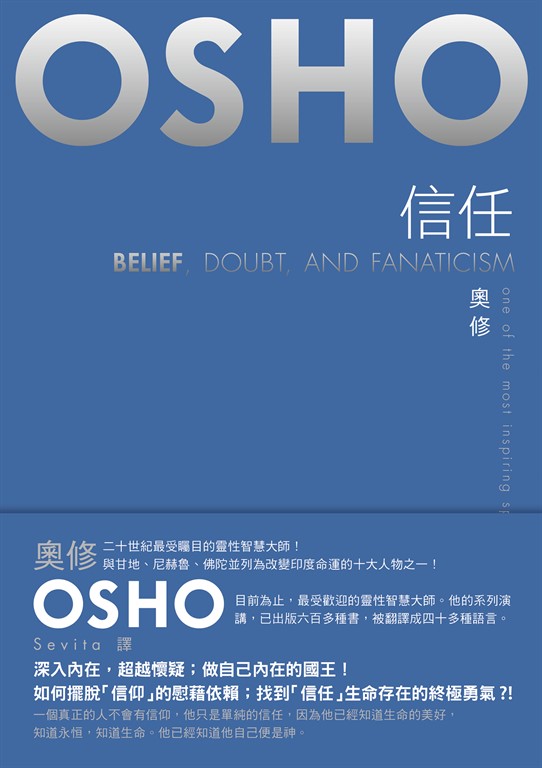 內容簡介 深入內在,超越懷疑;做自己內在的國王!如何擺脫「信仰」的慰藉依賴;找到「信任」內在生命的終極勇氣?!奧修OSHO‧二十世紀最受矚目的靈性智慧大師‧與甘地、尼赫魯、佛陀並列為改變印度命運的十大人物之一‧目前為止,最受歡迎的靈性智慧大師。他的系列演講,已出版六百多種書,被翻譯成四十多種語言,影響數以億計的人類心靈。/奧修給我們的忠告——一個真正信任的人,不會尋求任何信念慰藉自己神是一個虛構的謊言,但神性不是謊言醫藥療癒身體,靜心療癒心靈你可能擁有許多財產,但你並不擁有自己保護你自己的個體性,不要迷失在群眾裡宗教不是為了尋找信仰,宗教是一個讓你了解你的根本存在的一種努力祈禱不是什麼你在教會或廟裡所做的事情,它是一種你要成為的狀態,不論你身在哪裡。奧修說:一個真正的追尋者,不會用信仰來安慰自己,他會試著去發現更深的內在,以超越懷疑。你必須深入你的存在,不要擔心懷疑,讓它待在那裡,不要試著將自己隱藏在信仰後面,不要當一隻駝鳥;面對懷疑並超越它,然後會有一個時刻來到,在那最深的內在角落,只有存在,只要你探觸到那個點,懷疑便遠離了,你會看到它的愚蠢,它的荒謬可笑;你會看到懷疑是如何破壞你的生活的,它是如何腐蝕你的存在。只要放掉它,而不是用信仰來取代它。一個真正的人不會有信仰,他只是單純的信任,因為他已經知道生命的美好,知道永恒,知道生命。他已經知道他自己便是神,他變成了國王,但不是一般世界的國王,外在世界的國王,沒有什麼價值,沒有意義,真正的國王是你內在的國王。而令人驚奇的是,你完全沒有意識到你身上的這個寶藏,而這個寶藏只要你要求就能得到。宗教不是為了尋找信仰,宗教是一個讓你了解你的根本存在的一種努力……《信仰》主要談論人們因為對生命懷有許多的懷疑,因此轉而找尋各種信仰,試圖為自己的內在找尋慰藉。奧修告訴我們,藉由信仰的慰藉,並不能讓你的內在產生真正的蛻變,它只會讓你愈來愈遠離真實,它並不能真正幫助你。本書談信仰與信任的不同,以及它對人類造成的不同影響。信仰是找一個外在的他者或他物取代內在的不安;信任則是了解生命後,對存在產生的最大的信任,那從內在產生的強大信任,才是真正屬於你自己的力量,那是存在賦予你的力量,讓你有勇氣應對任何外在的懷疑與磨難。